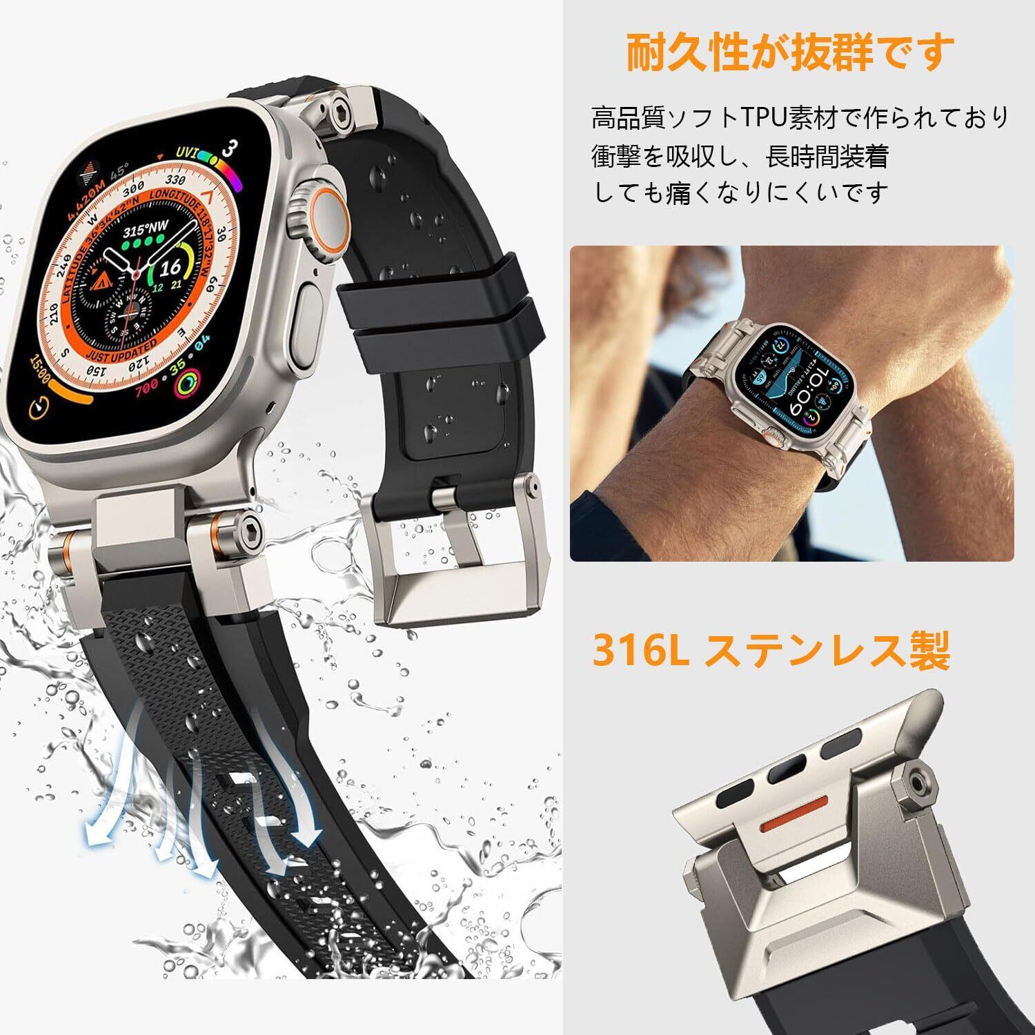 【対応機種】このバンドはアップルウォッチ用TPUバンドです、 Apple Watch Ultra 3/Ultra 2/ Ultra 49mm、 Series SE 3/SE2/SE/11/10/9/8/7/6/5/4/3/2/1 46mm/45mm/44mm/42mmに対応。手首サイズ:140-220mmに対応できます。(ご注意:watch本体含まれていません)