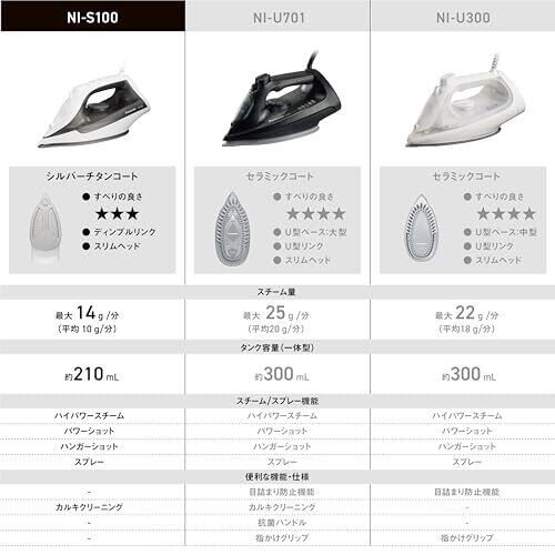 パナソニック コード付き スチームアイロン NI-S100-H グレー 軽量 大容量タンク