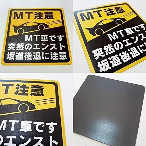 マニュアル車 MT注意ステッカー【耐水マグネット】MT車です 突然のエンスト 坂道後退に注意(④1枚, 12.2×12.2cm)