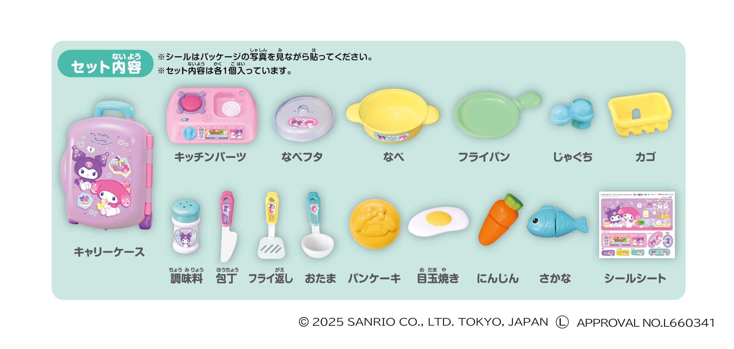 大人気のマイメロディとクロミのデザインのキャリーケース型おままごとセットです。