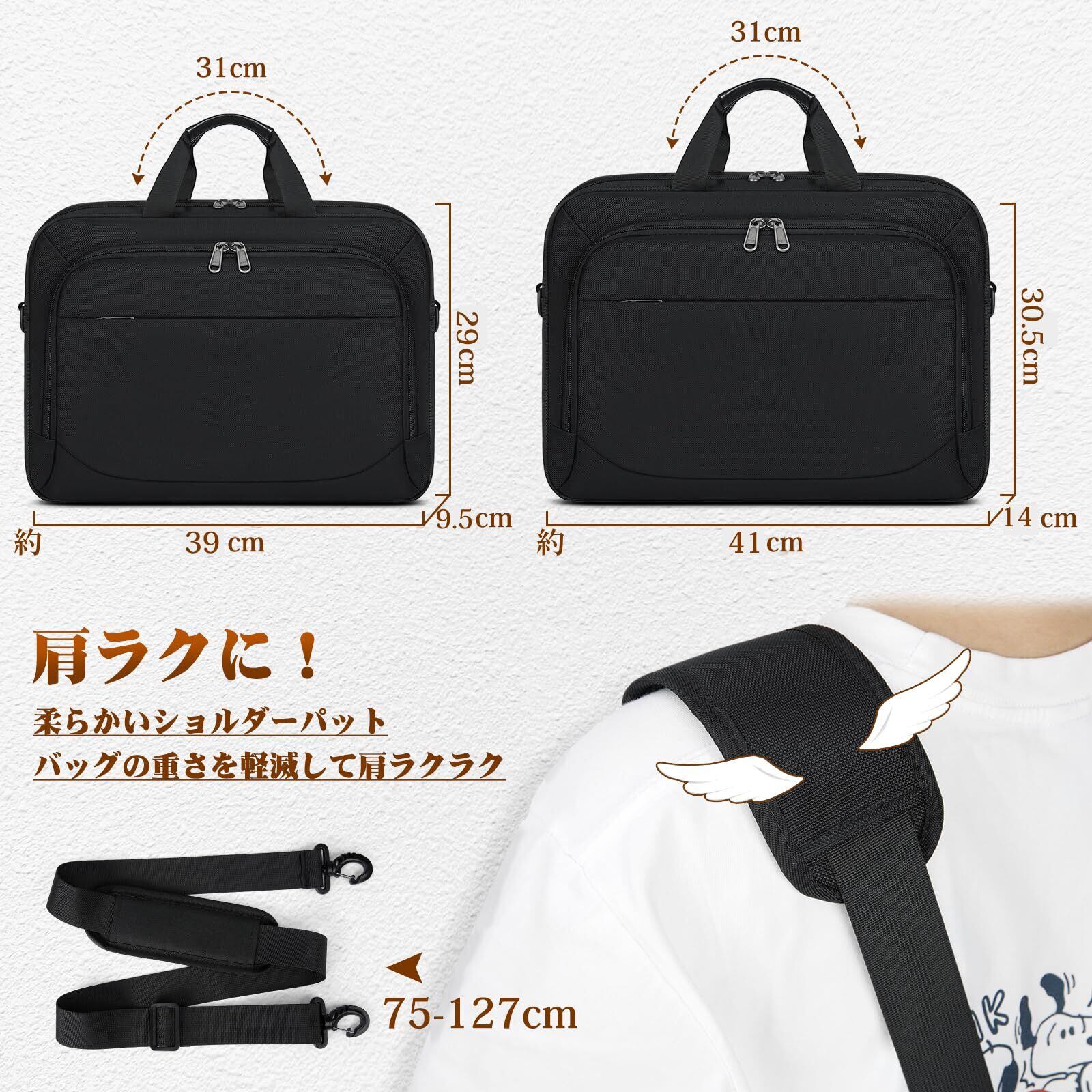 【使用シン・仕様 】ビジネス、就職活動、出張などのシンに利用可能のバックです。サイズ15.6インチのバックの外寸:約39×29×9.5 cm;サイズ17.3インチのバッグの外寸:約41×30.5×14 cm。ショルダーベルトの長さ:75-127cm。