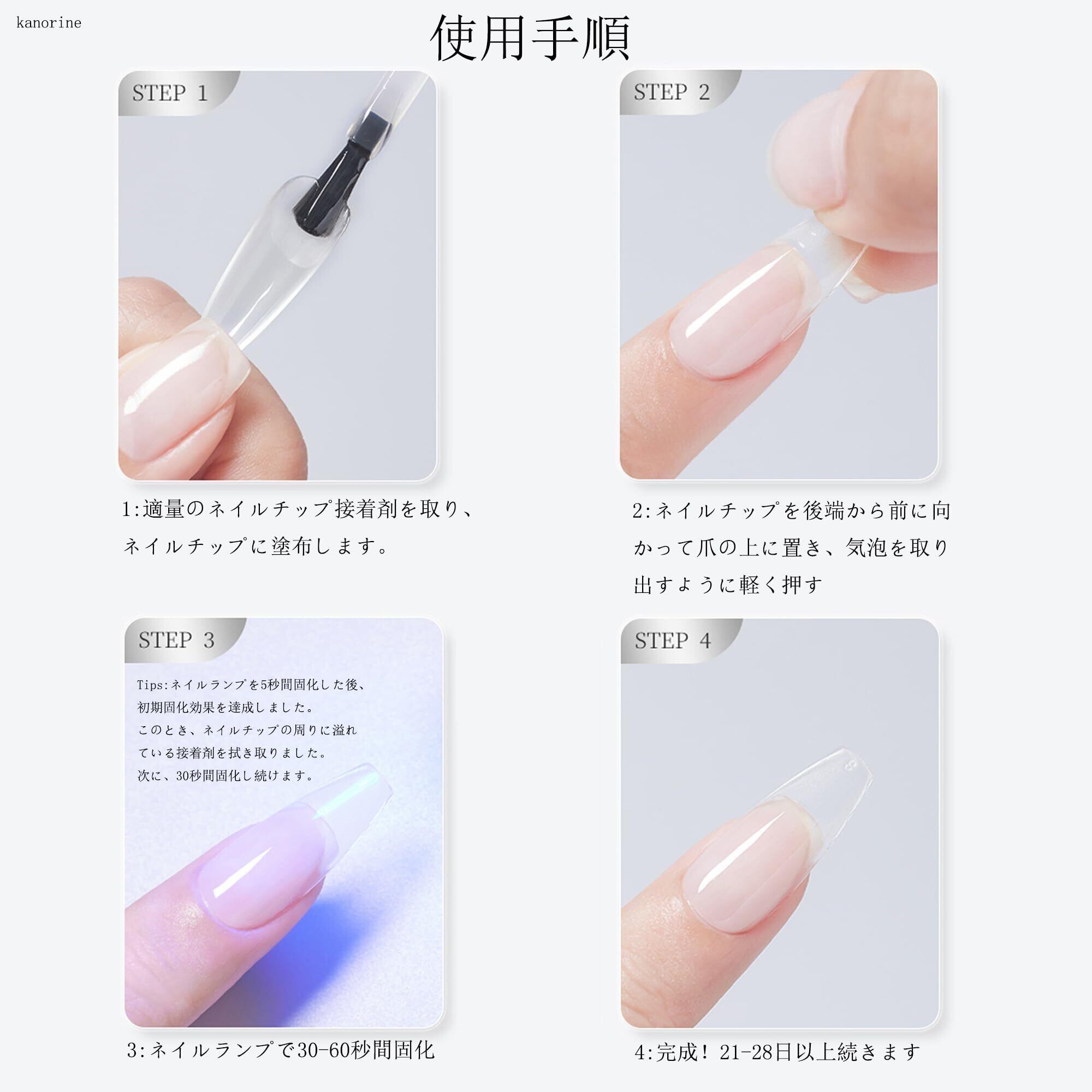 【長持ち】ネイルチップ接着剤として使用する場合、ネイルチップが本爪にしっかりとくっつきます。落ちにくいようにします。適切なステップに従って、最長3-4週間以上持続できます。