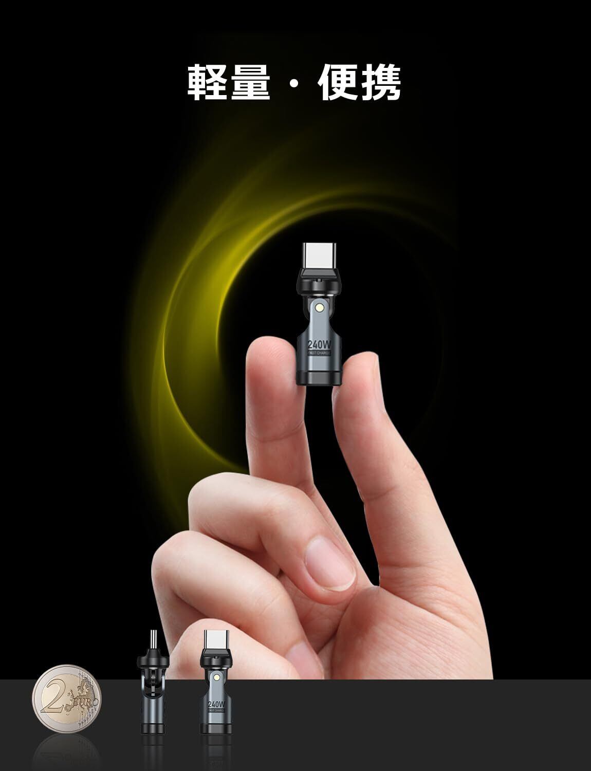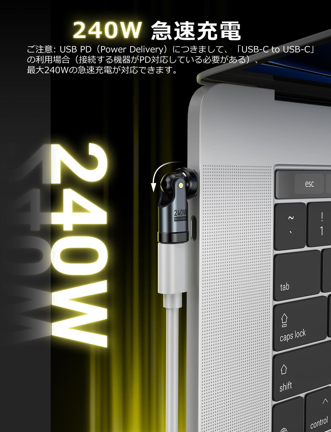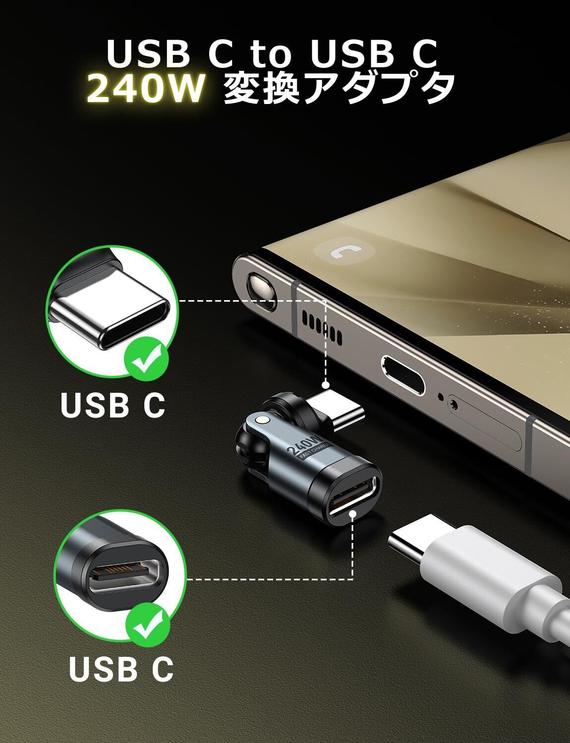 USB-C 変換アダプタ PD240W 540°回転可【2個セット】タイプC l字変換アダプタ 急速充電可 データ転送可 片MacBook Pro/Phone15/15 Pro/16/16 Pro/Galaxy/Google Pixel対応