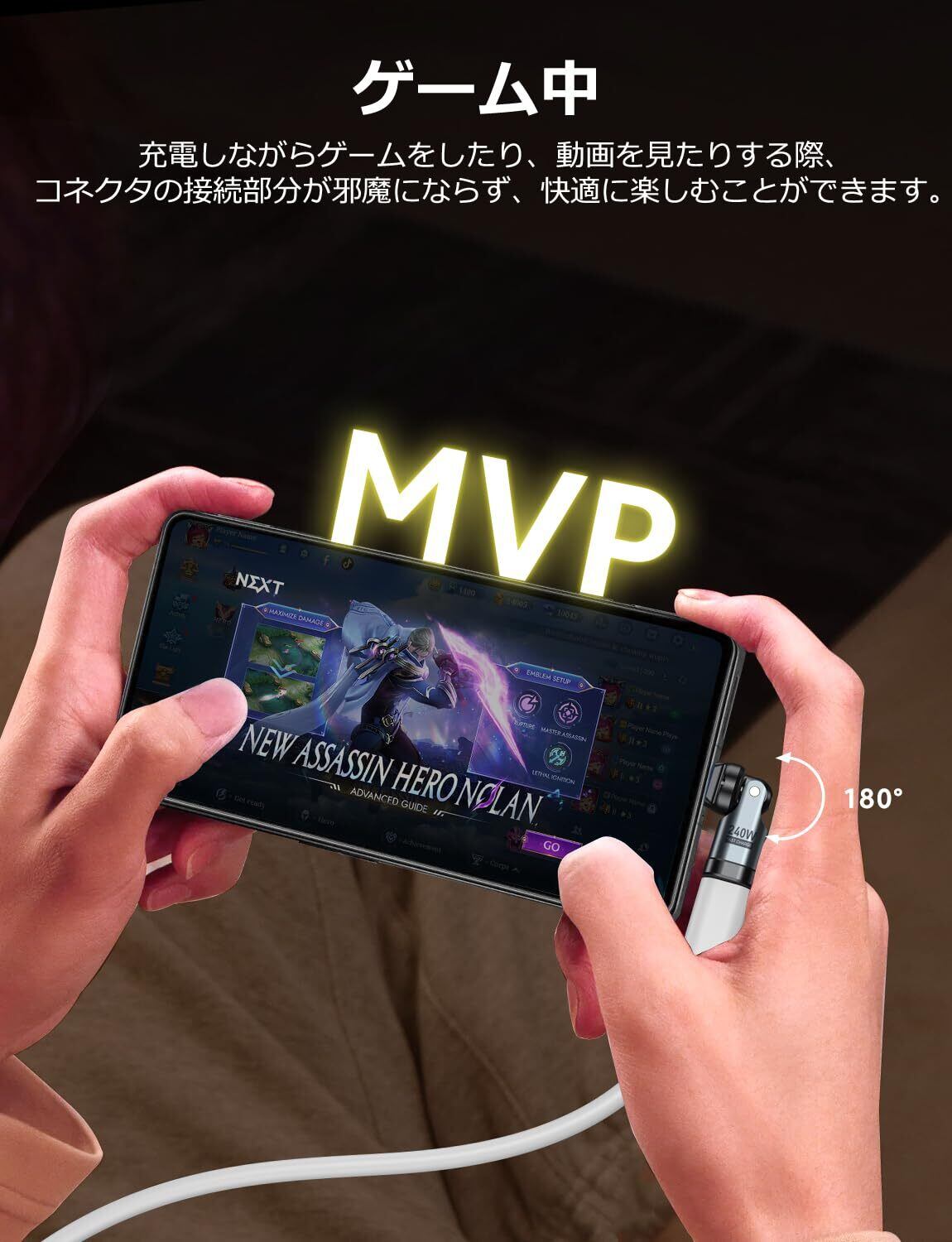 【L字型デザイン & 540°回転】特別設計のL字型デザインを採用しており、充電接続口は360°回転可能です。この機能により、充電ケーブルを様々な角度で自由に調整できるため、ゲームや動画視聴中にコネクタ部分が気になることはありません。ユーザーは快適にデバイスを操作しながら充電ができるため、日常の使用感が大幅に向上します。また、異なる長さの充電ケーブルに対応しているため、どんなシチュエーションでも便利に活用できます。このデザインは、特にモバイルゲーマーや動画ストリーミングを楽しむ方々に最適です。