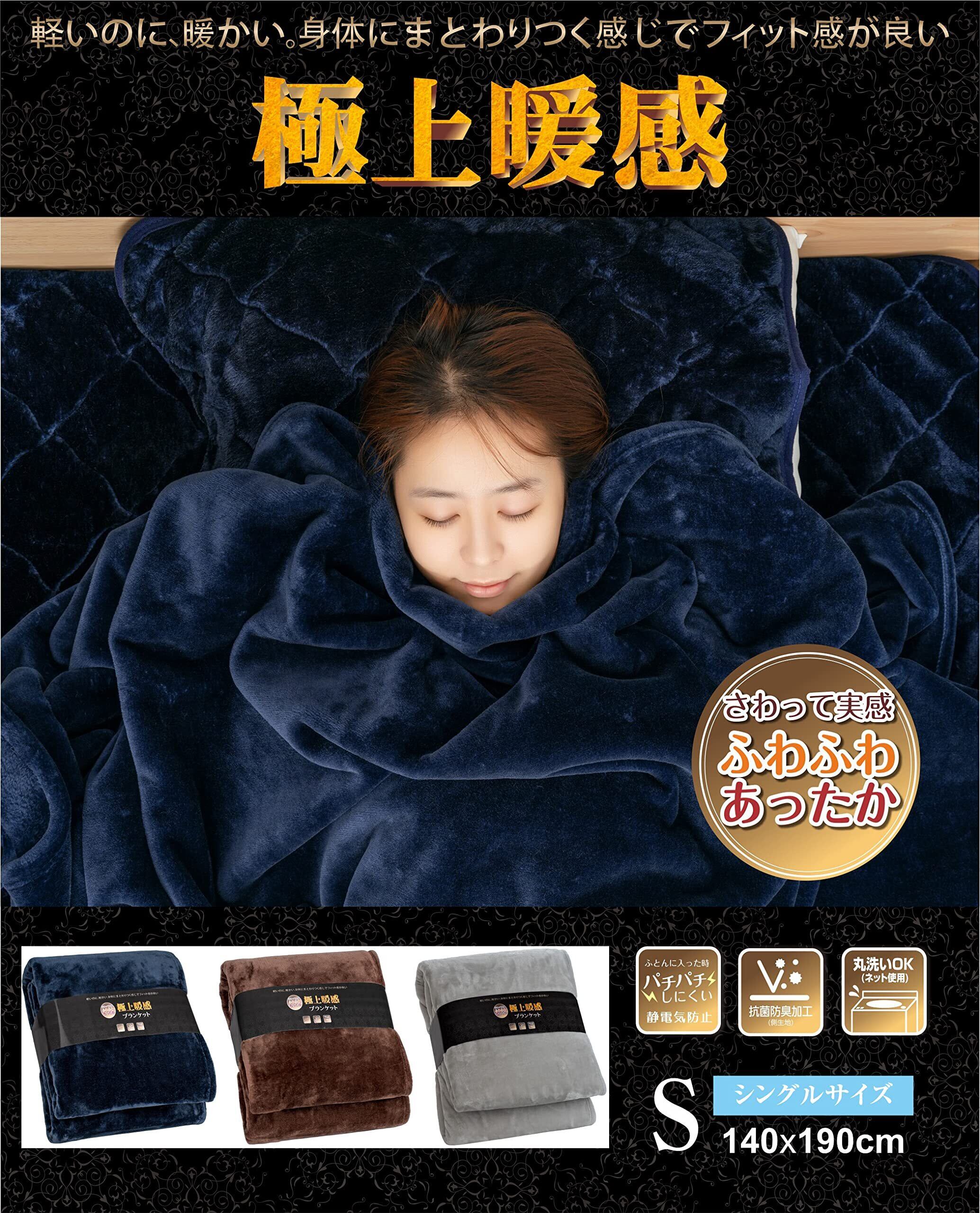〔日本伝統技法、極上の暖かさの毛布〕一般的に流通された2枚合わせの毛布と比べ、本製品は1枚の毛布に仕上げ、生地を両面共に起毛させたニューマイヤー毛布になります。毛足に空気を多く包み込んでいるため、暖かい空気をしっかりと閉じ込め、蓄熱保温性に優れているのが特徴です。さらに軽量でご使用時の圧迫感を感じにくく、快適にご使用いいただけます。