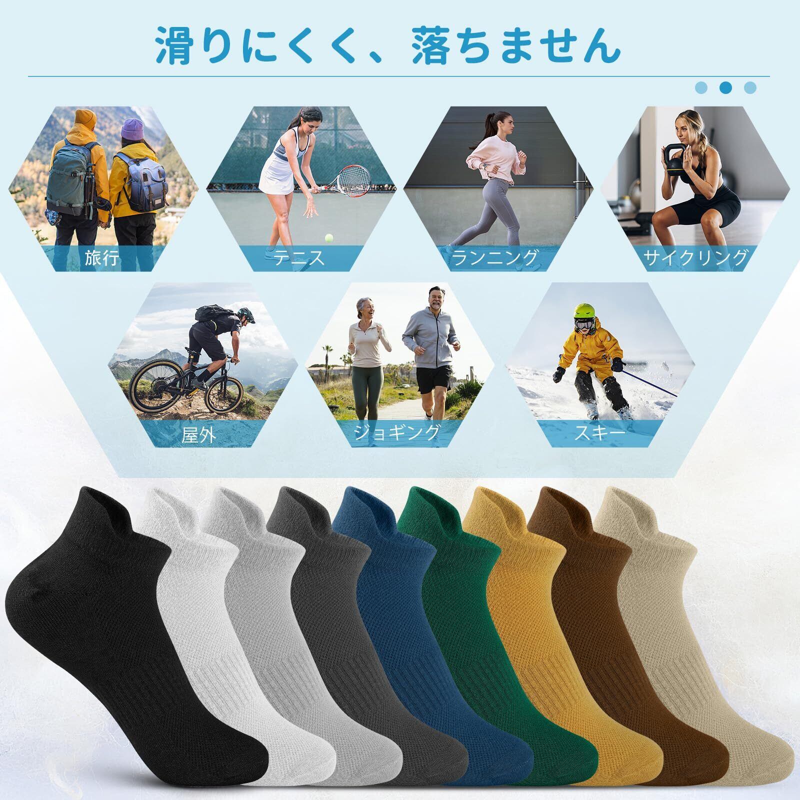 幅広く使える: 当社のスポーツソックス・くるぶしソ・トップ・ランニング・ソックスは綿を多く使用しており、よりソフトで履きやすい。スポーツ、運動、ゴルフ、トレーニング、テニスなど、屋内外の様々なシーンや活動に適しています。あらゆる活動に最適です。