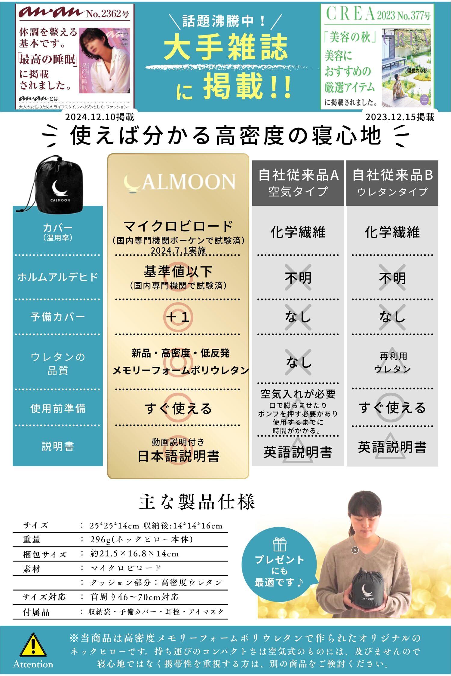 【anan掲載 理学療法士監修】CALMOON 奇跡のネックピロー 飛行機 快適グッズ 予備カバー付 首セレブ トラベルピロー 首枕 旅行 低反発 携帯枕 クッション コンパクト 車 夜行深夜バス 新幹線 ソファ 椅子 旅行 お昼寝 父の日 母の日 誕生日プレゼント neck pillow 超軽量295g 日本正規品180日間保証付 (スペースグレー)