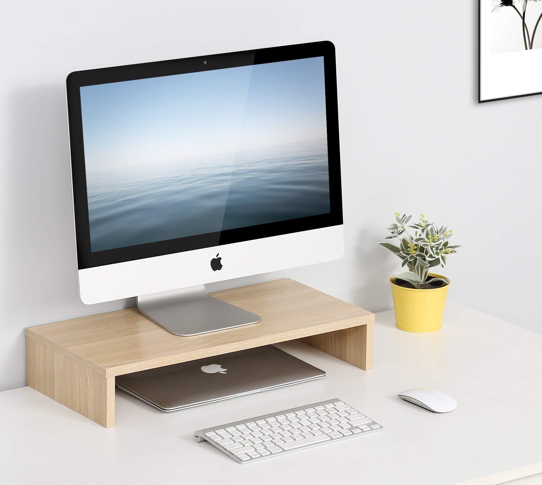 FITUEYES 机上台 モニター台 pcモニター台 デスク上置棚木製 キーボード収納 卓上收纳 1段 幅540mm ノートパソコン台オーク DT105401WO