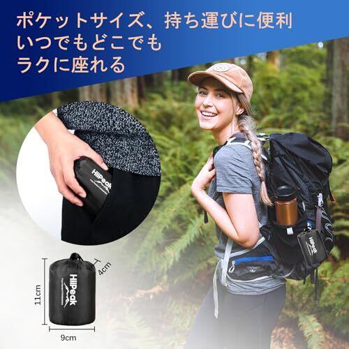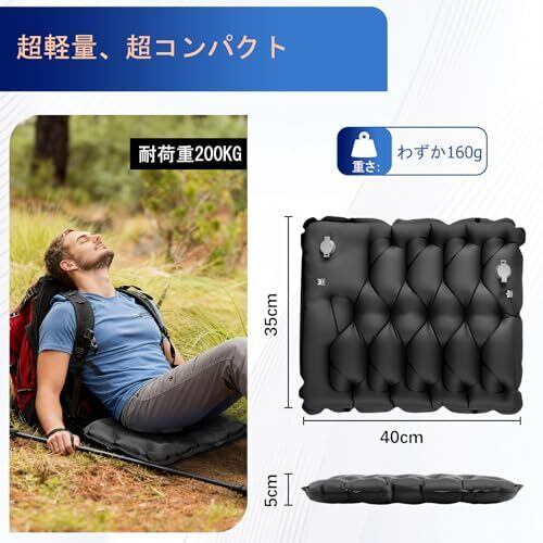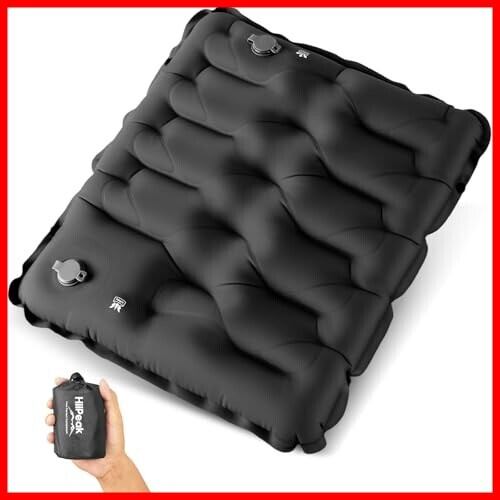 HiiPeak エアー 座布団 エアクッション 折りたたみ座布団 レジャーシート 厚手 1人用 お尻クッション シート 【ポンプで膨らむ】 35cm×40cm 厚さ5cm 耐荷重200kg 軽量 コンパクト 旅行便利グッズ 飛行機・夜行バス・山登り・花見・釣り・公園・キャンプなどに最適 (ブラック)