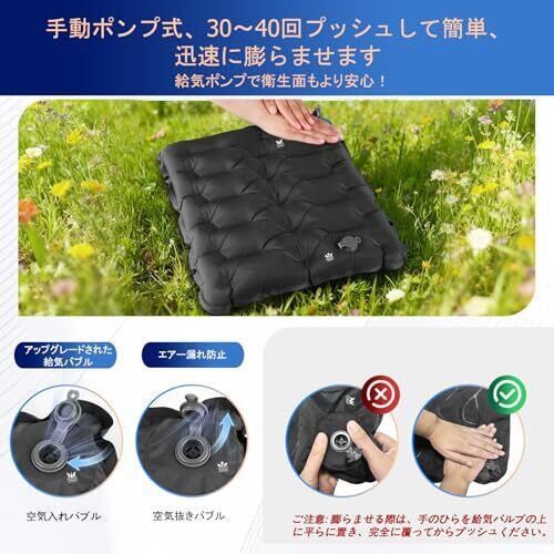 【あらゆる場所に適用】:飛行機の座席の座り心地に悩んでいませんか?スタジアムの硬い観客席にうんざりしていませんか?バスや駅のベンチで長時間待つのにうんざりしていませんか?当社の軽量で膨らませるクッションは、どんな状況でも座るときの快適さを高めるよう設計されています。飛行機やスポーツ観戦、キャンプ、山登り、花火大会、釣りなどの野外イベントなど幅広いシーンで大活躍、レジャーシート 厚手並みの快適性をミニサイズで実現。お尻クッションとしても優秀で、旅行持ち歩くたびの便利グッズです。