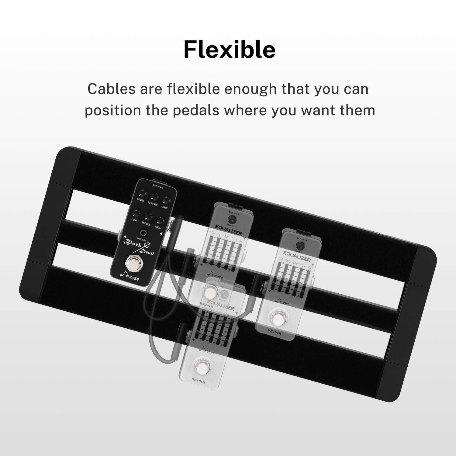 フラットケーブルなので、断線しずらく、邪魔にならなく、エフェクターボードをスッキリして美観性も保ちます