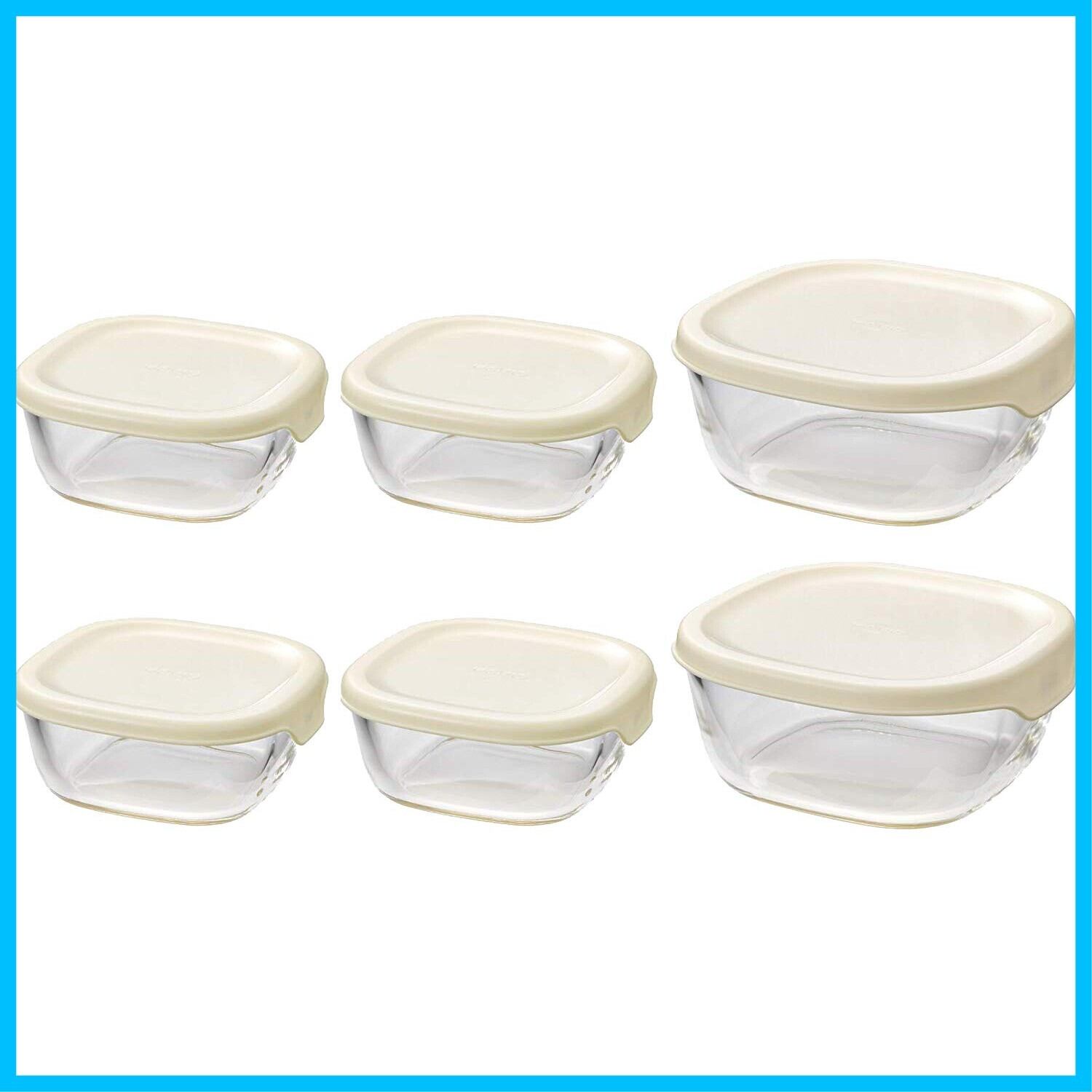 HARIO(ハリオ) 耐熱ガラス製保存容器 6個セット 満水容量250/600ml オフホワイト 日本製 KST-2012-OW