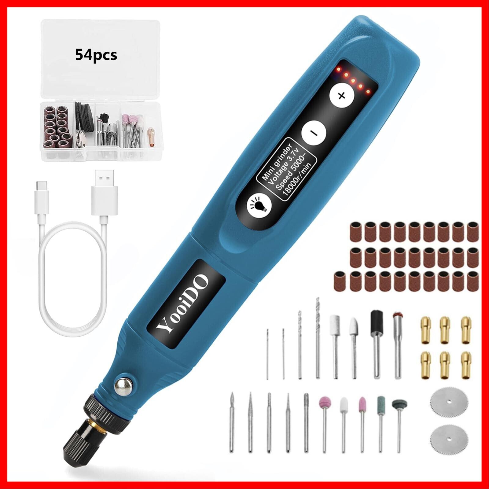 ミニルーター リューター コンパクトルーター 5段変速 54PCSセットYooiDOルーター工具 2000mAhリューター 電動 18000RPM高速回転 USB充電式 コードレス 研磨/彫刻/切削/穴あけ/汚れ落とし/錆落とし/切断/つや出し/ネイルアート DIY軽作業 電動ルーター 充電式りゅーたー 照明ライト付き プレゼント 父親 男性 ギフト 日本語取扱い説明書(ネイビー)