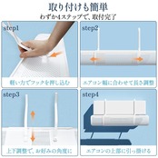 【取り付けが簡単】ぶら下げ式なので、取り付けは掛けるだけで完了します。垂直に掛ける厚いカバーで、フックをエアコンの上部にしっかりと固定します。これにより、強風のノイズが軽減されます。