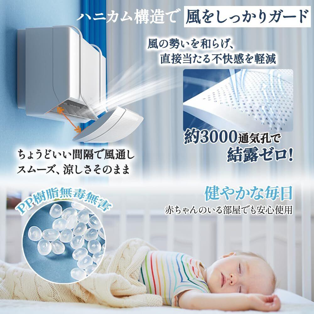 【直撃風をブロック】クーラー風よけカバーはハニカムデザインにより、約3000以上の小さな気孔がエアコンからの風を分散し、直撃風を防いで、風が効果的に通り抜けます。これにより、凝縮水の生成が抑制され、結露が防止できます。