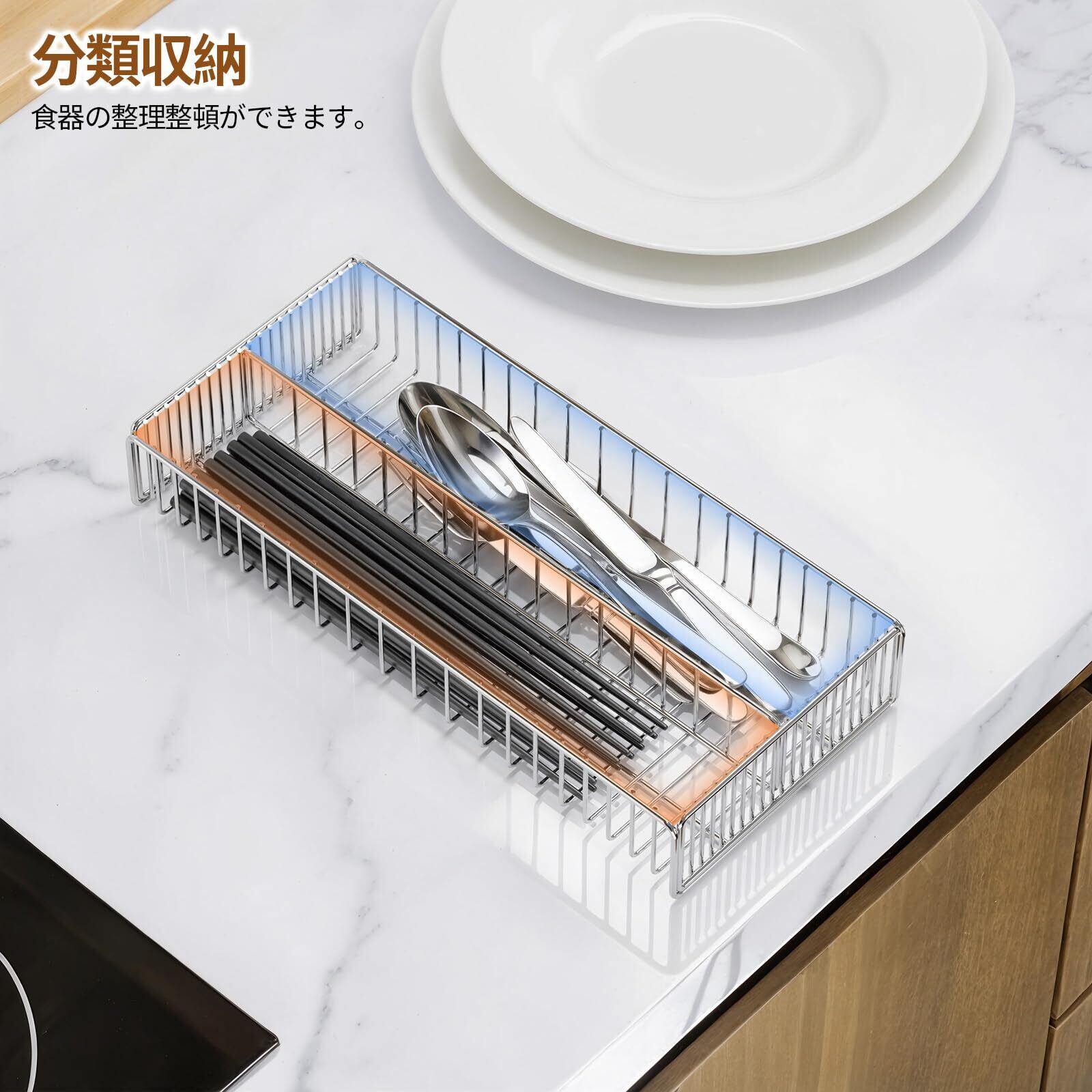 【分類収納】多機能水切りラックには仕切りが付属しており、お客様はニーズに合わせて食器ケース内部の幅を調整し、箸やスプーンを分けて収納できます。必要な食器を探さずに取り出せ、快適な食事環境を高められます。