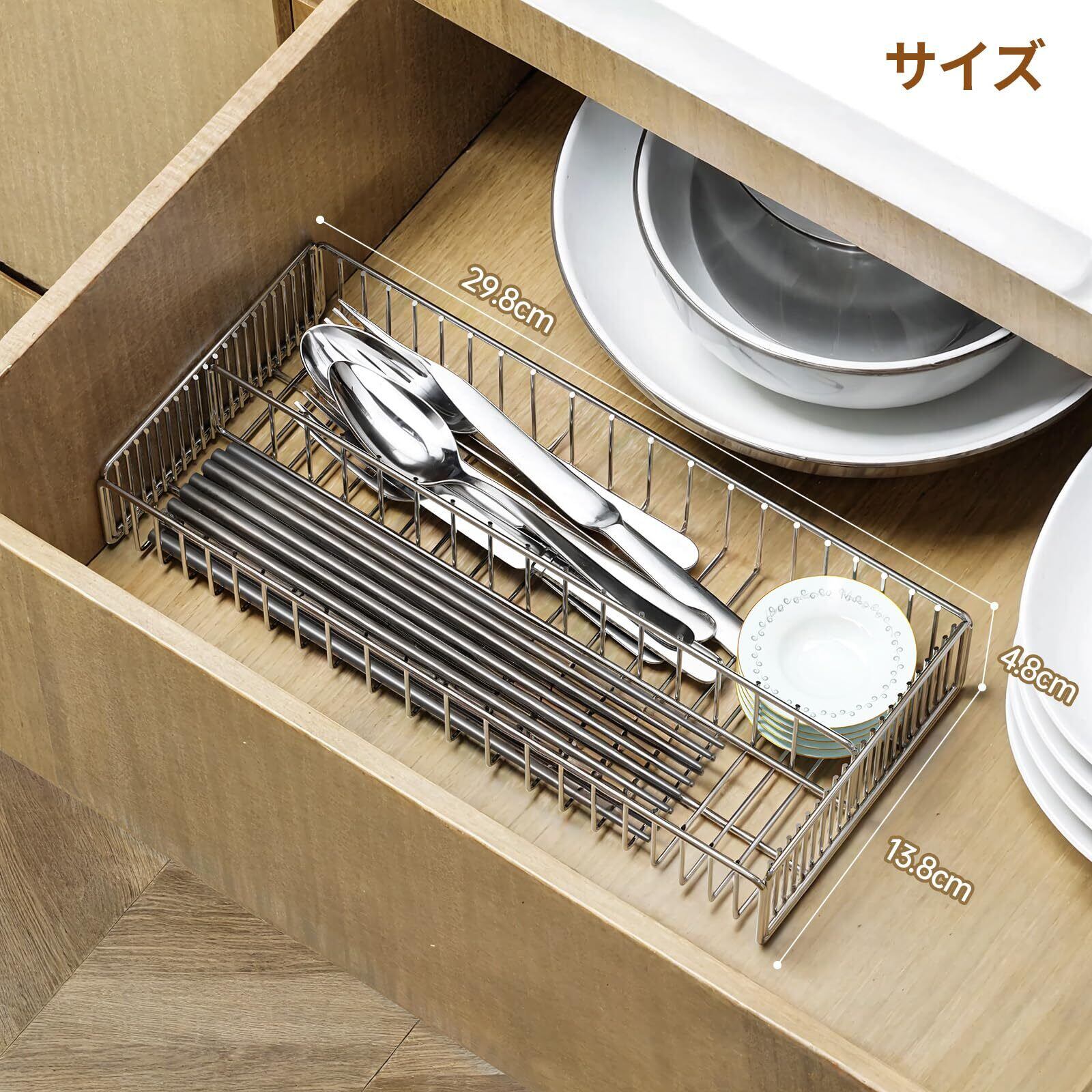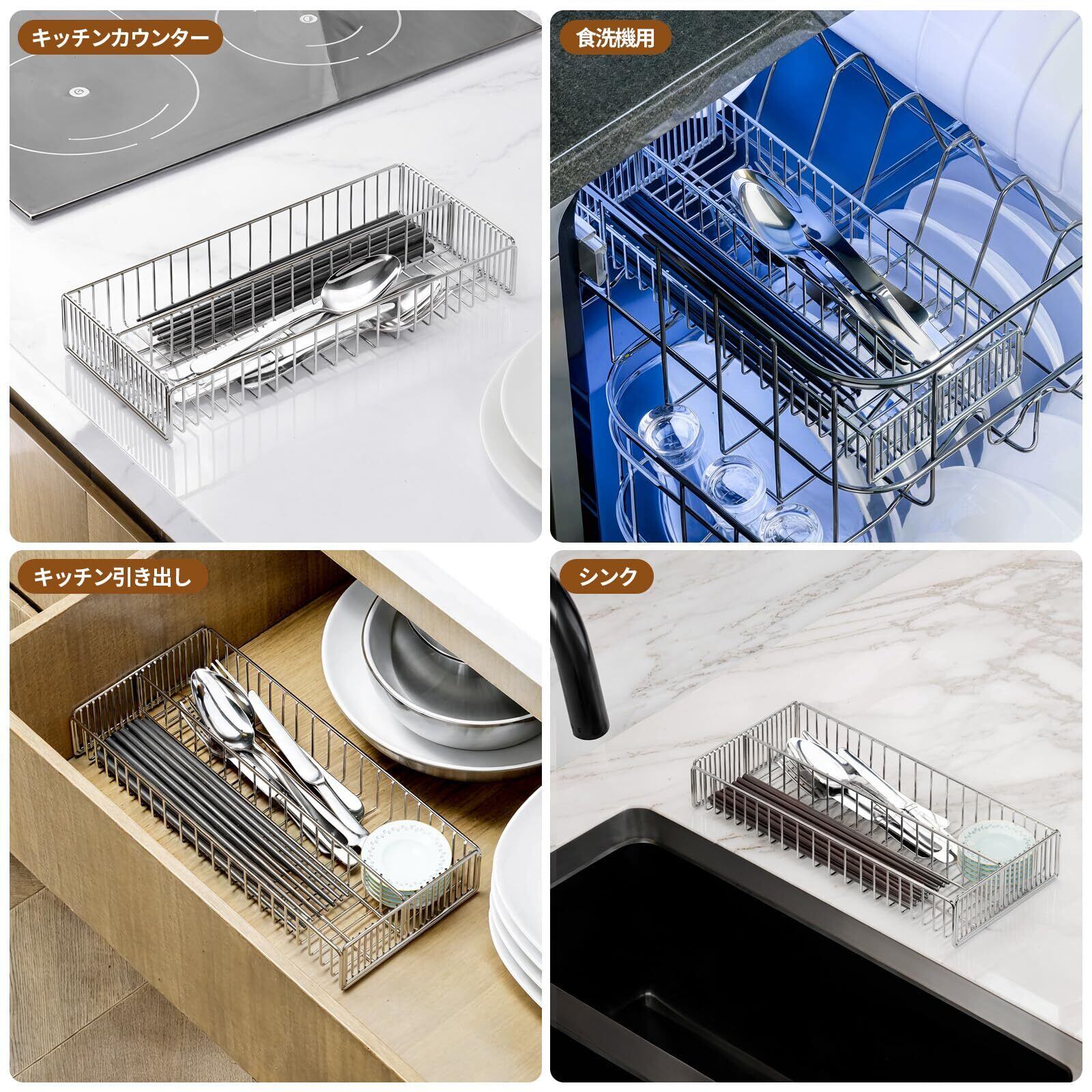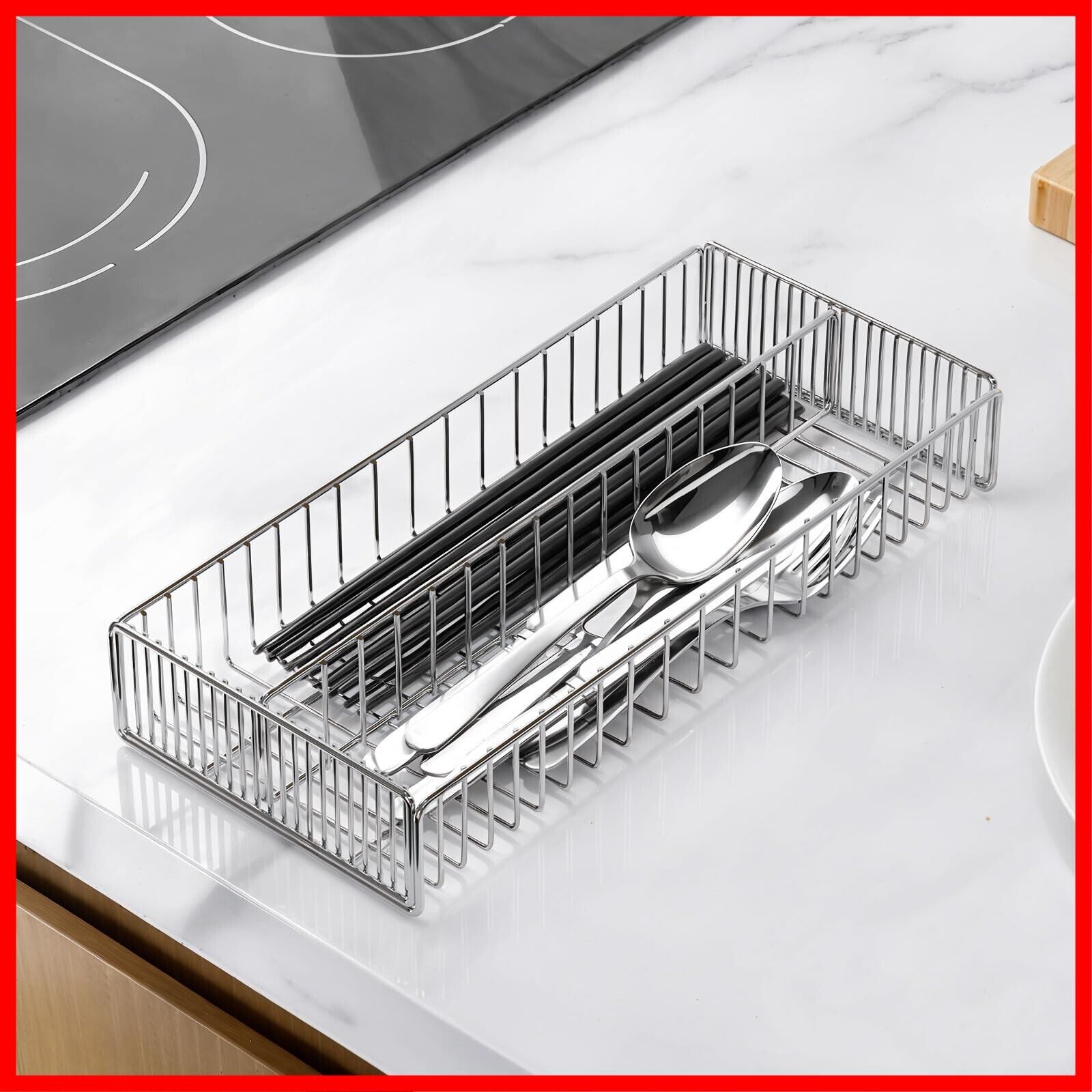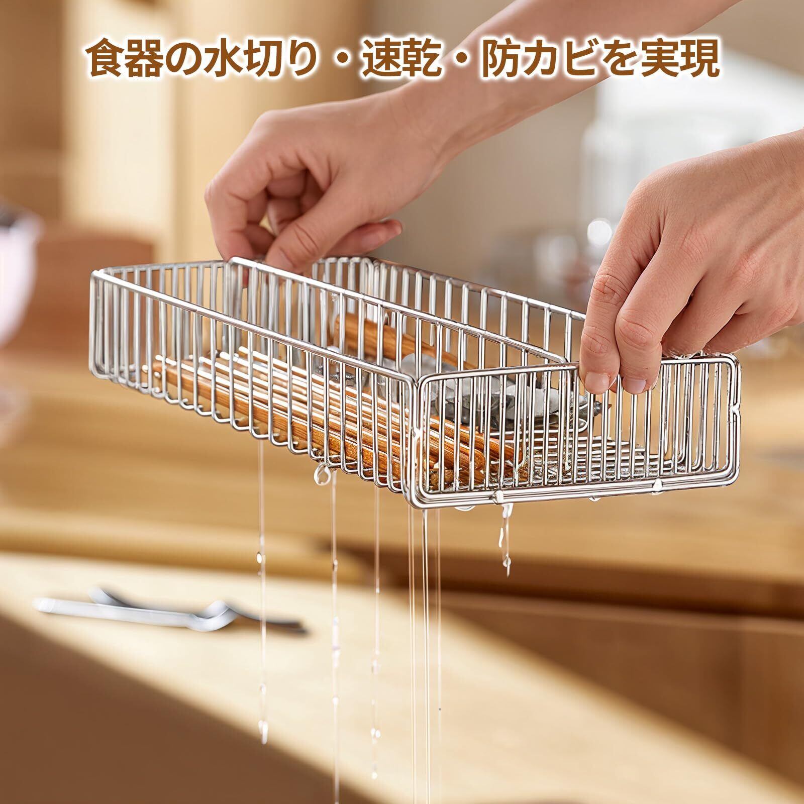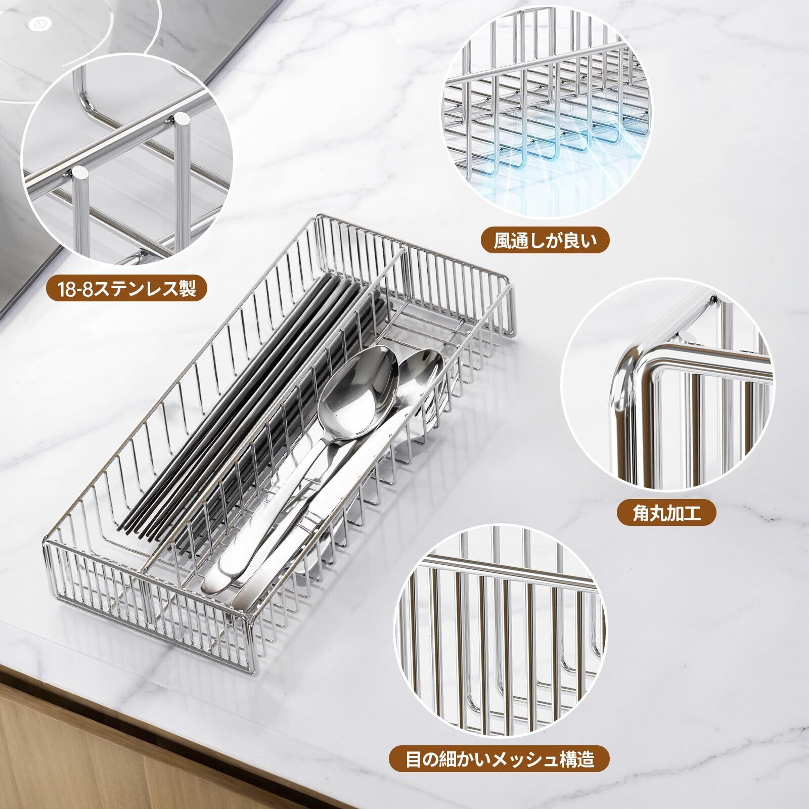Toski カトラリーケース 18-8ステンレス製 水切りかご 防水 錆びにくい 箸入れ 仕切り板付き 分類収納 丈夫 食洗機対応 多機能 水切りラック 錆びにくい 防カビ 省スペース キッチン用品 スプーン フォーク入れ 食器置き お手入れ簡単 卓上用品 Lサイズ シルバー