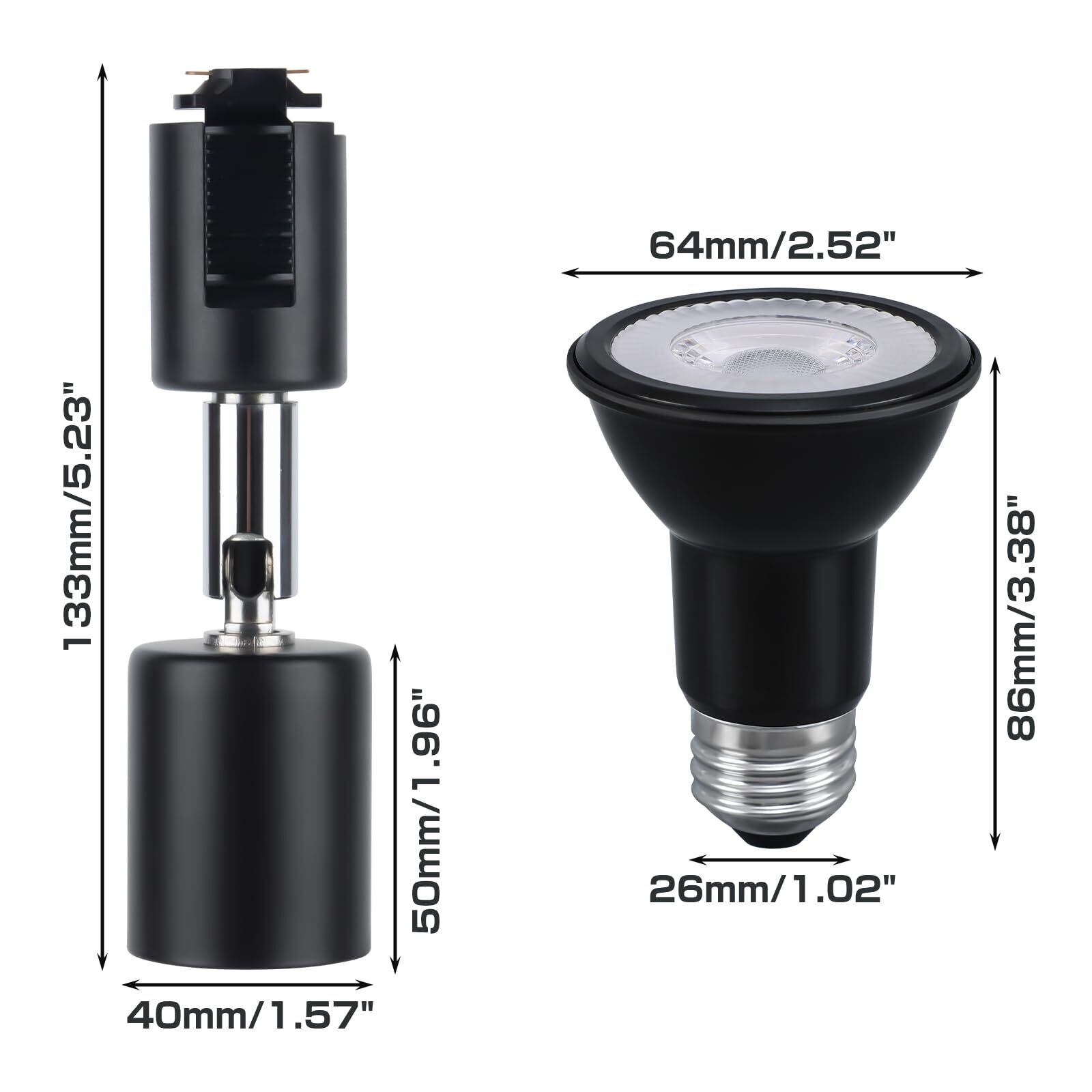 szbritelight ライティングバー用 スポットライト ダクトレールライト e26 電球付き ダクトレール用照明器具 ライティングレール 照明 PAR20 レフ球型 ランプ付 LED電球+器具セット (ブラック, 昼光色 2個セット)