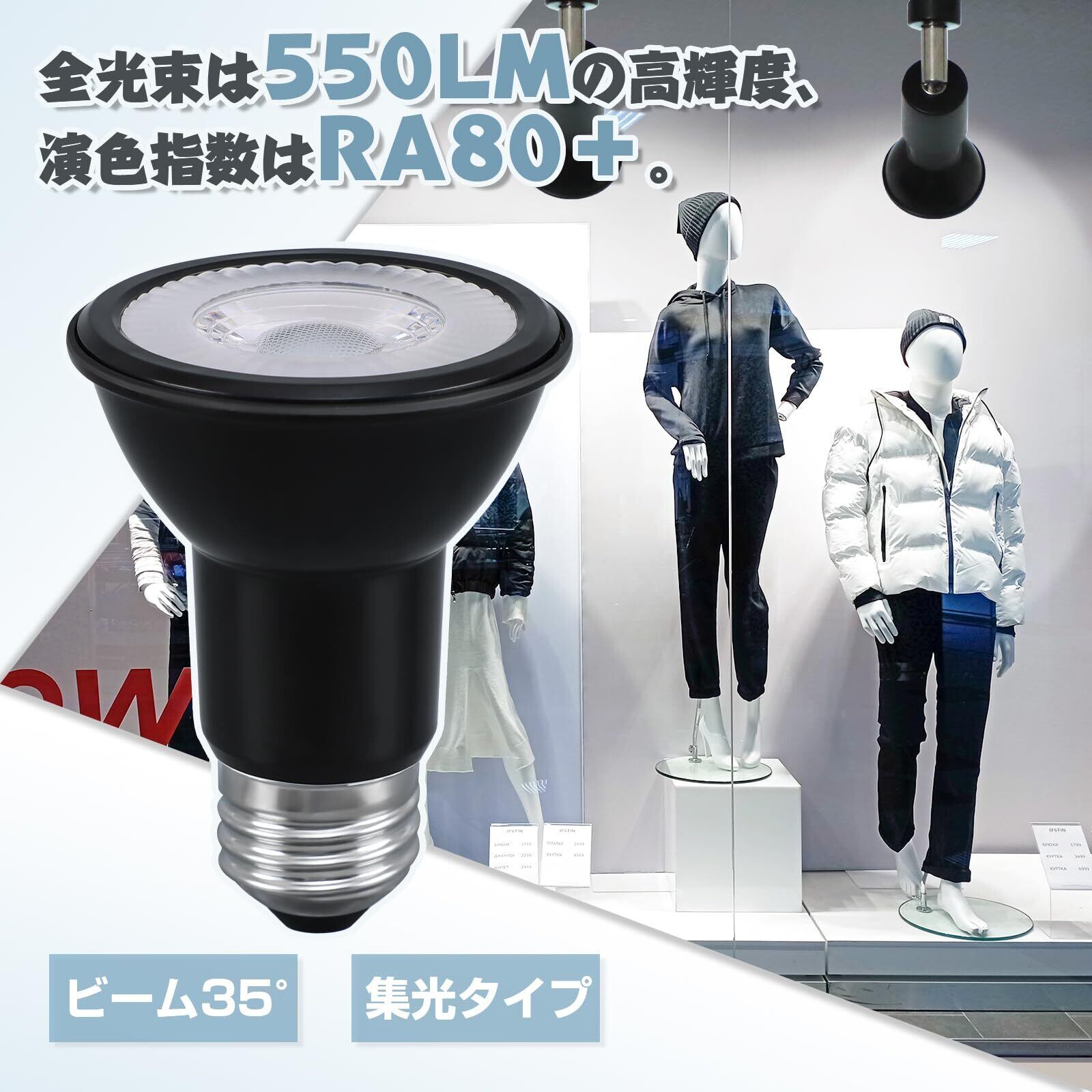 【適用場所】ビーム35°の集光タイプで、全光束は550ルーメンの高輝度を誇ります。Ra80以上の高演色性で、ご自宅のリビングやキッチンはもちろん、レストランのメニューボードや美術館などの展示照明、壁面や絵画などへの重点照明など様々の場所に適用します。(白い天井や壁とよく調和します)