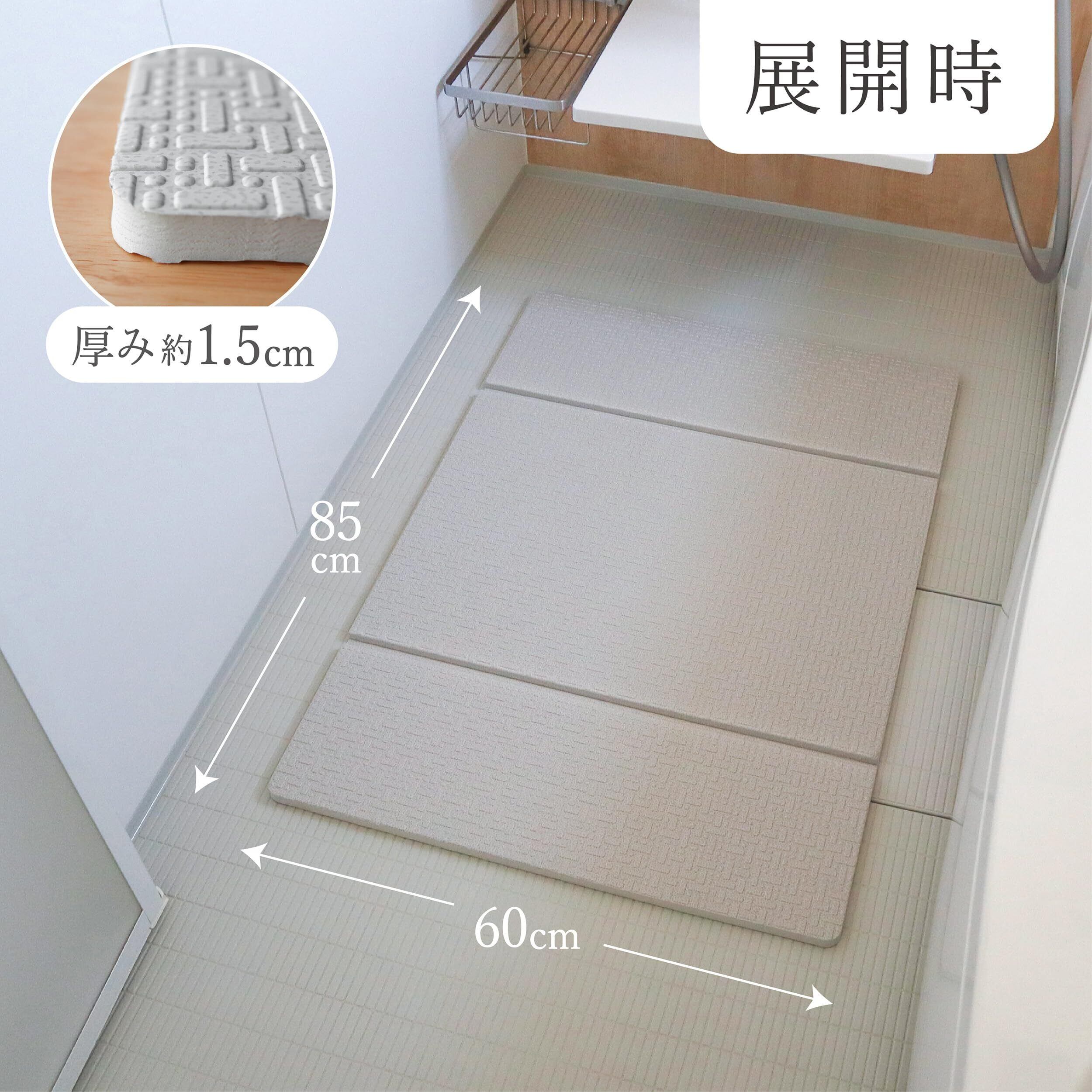 東和産業 風呂マット 折りたたみ Kufu 浴室 85×60cm(厚さ1.5cm) グレー ラバーマット バスマット シャワーマット 厚手 速乾 防カビ加工 保管しやすい スノコ EVA樹脂