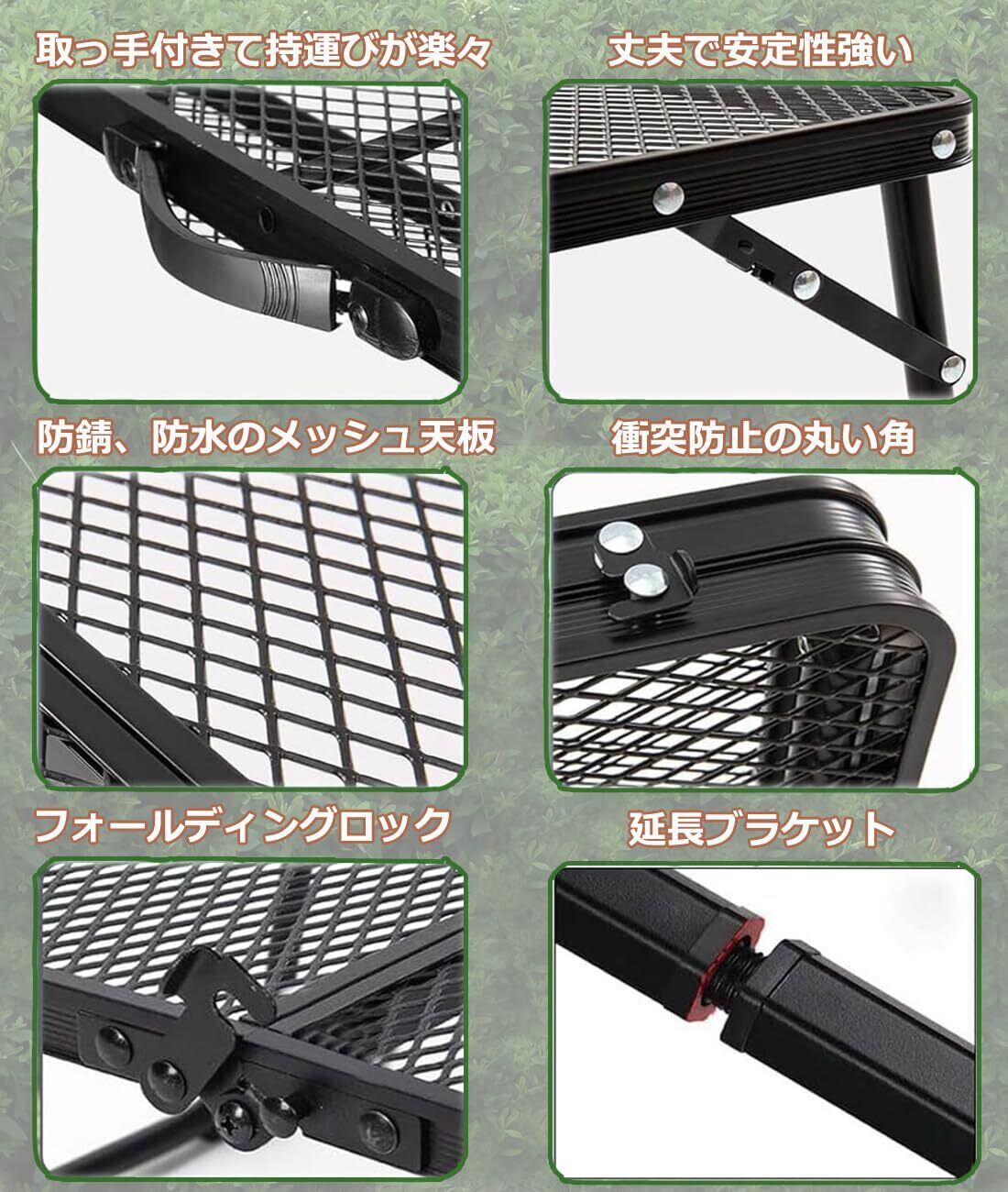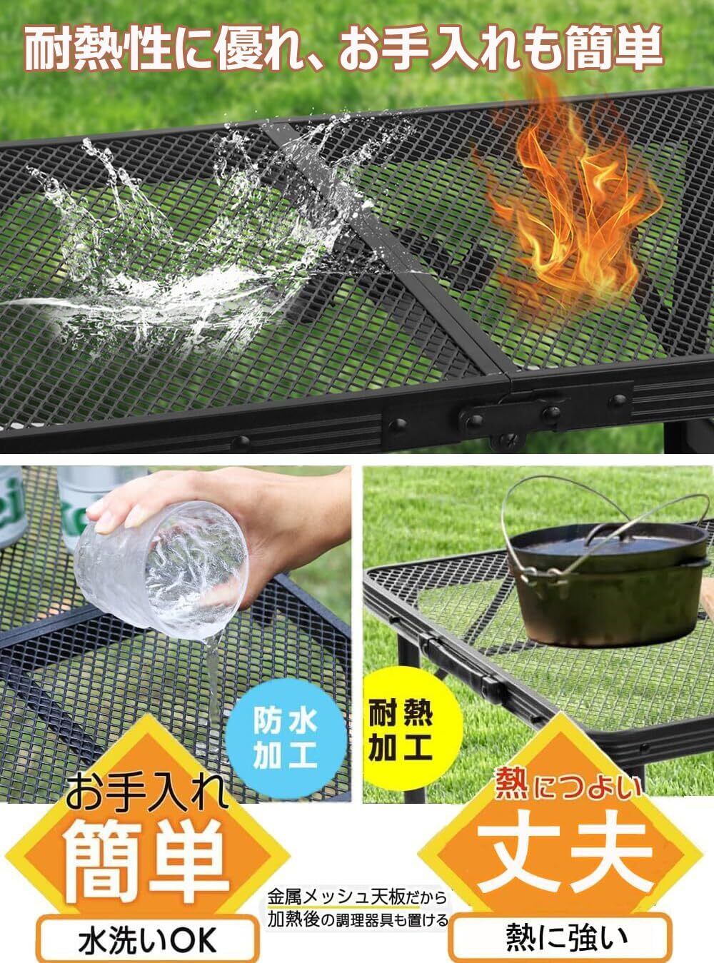 【様々な場所に活躍】天板サイズは横90cm×縦40cmで、アウトドアテーブルとしては、キャンプ、ディナー、料理、夕食に適しています。網が密集していて、雑誌、パソコン、おやつ、飲み物など物を置くことに適します。来客用のちゃぶ台、お子様テーブルとしてなど、室内での様々なシーンにも対応できます。
