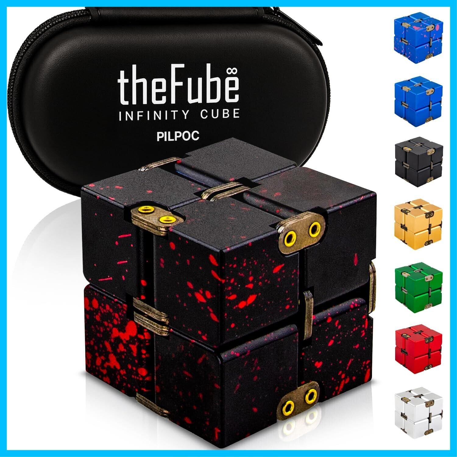PILPOC theFube インフィニティキューブ フィジェット トイ デスクトイ サイコロ キューブ ストレス解消 グッズ 暇つぶし 大人 子供 手遊び イライラ解消 静音 集中力 リラックス 気分転換 おもちゃ 金属 デスクトイ 専用保護ケース付き (ブラック/レッド)