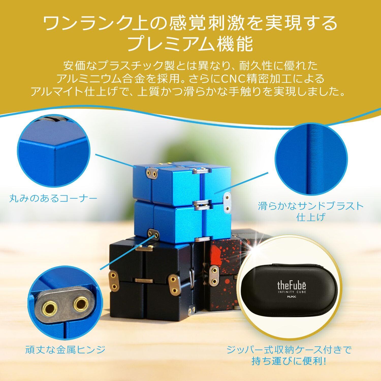 メタルインフィニティキューブ:theFube インフィニティキューブはアルミニウム合金製。金属でできているため、高い強度と耐久性に優れています。表面はなめらかで、オイル不要のスムーズな回転を実現。さらに美しいカラーリングが目を引きます。価格以上の価値を実感できる、最高の品質を求める方にぴったりのインフィニティキューブです。