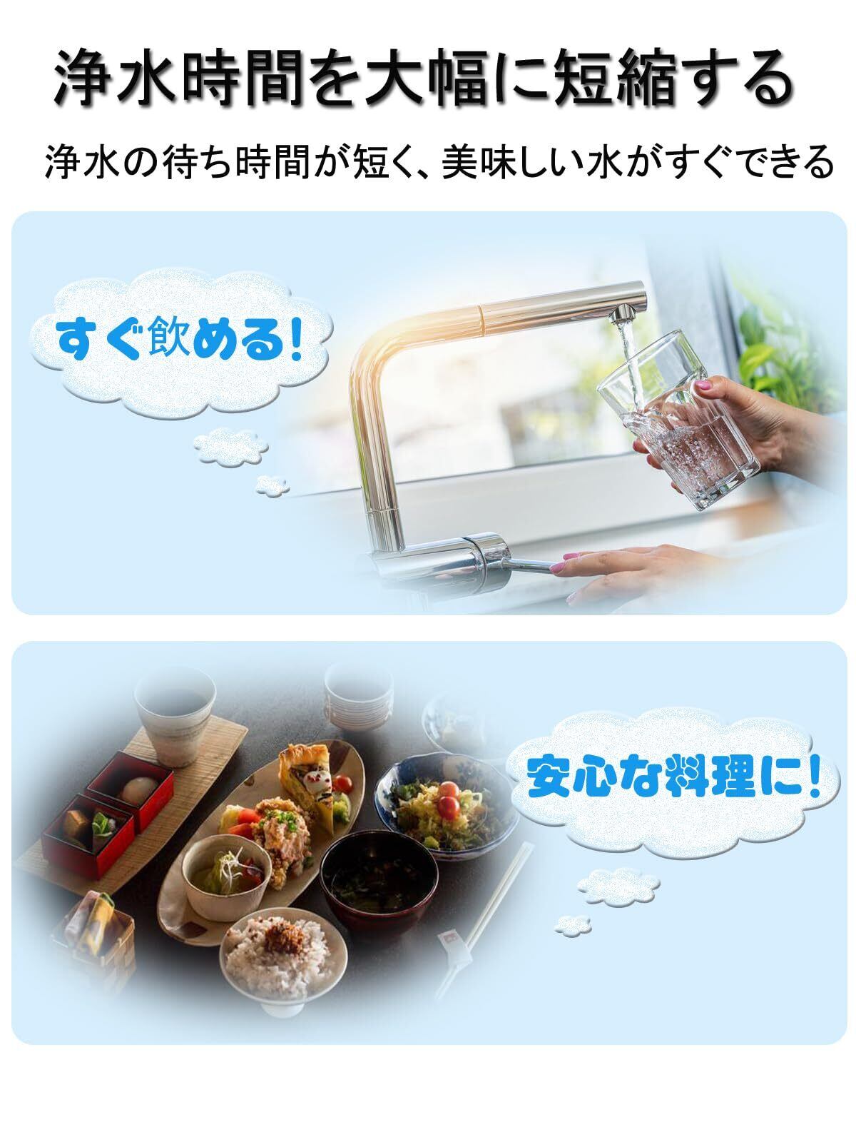 【細菌が繁殖しにくい】抗菌性があるためカートリッジ部に細菌が繁殖しにくく、いつでも安心な浄水をお届けします。浄水器カートリッジは定期的に交換しないと、カビたりヌメリが発生したりする可能性はあります。浄水器は水道水に含まれる味を損なう物質を除去し、おいしい水をいつでも気軽にお使いいただけます。
