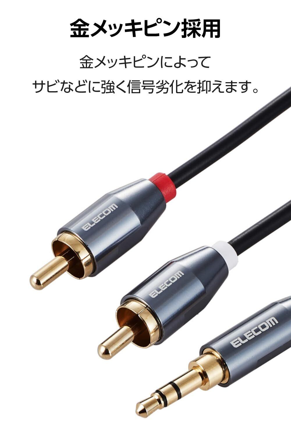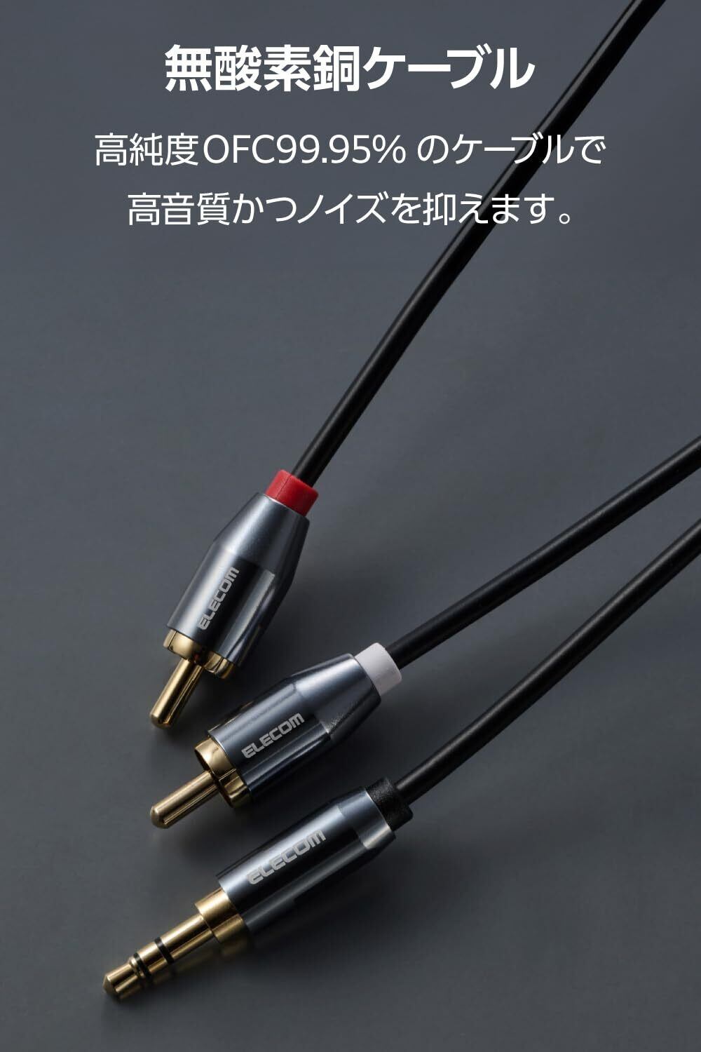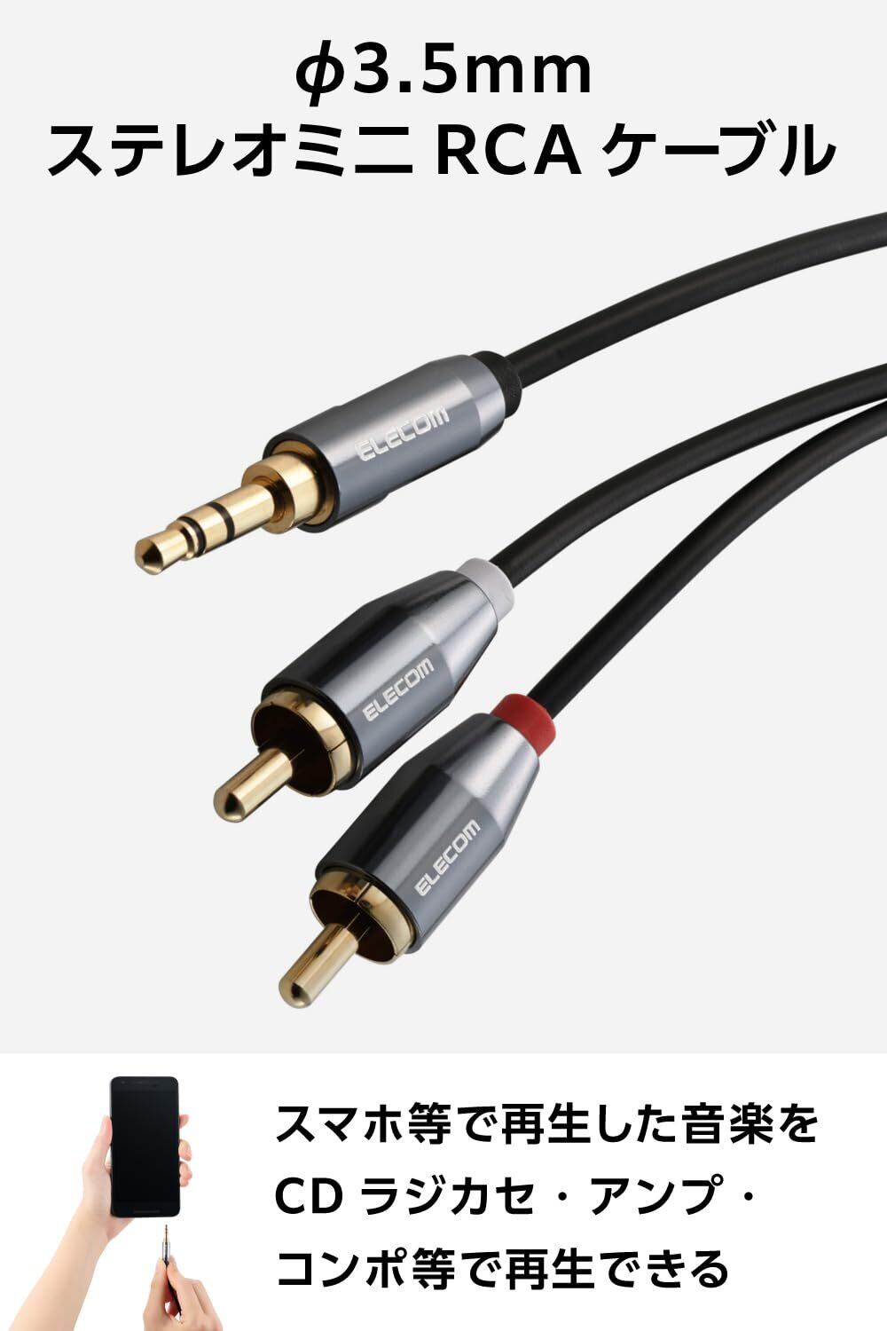 エレコム オーディオケーブル RCA - 3.5mm ステレオミニプラグ 変換 3極 赤白 2m AUX L/Rそれぞれのサウンドを再生 [信号の歪みや伝送ロスが少ない] ミニコンポ/アンプ/スピーカー ブラック ECDH-35WR20BK