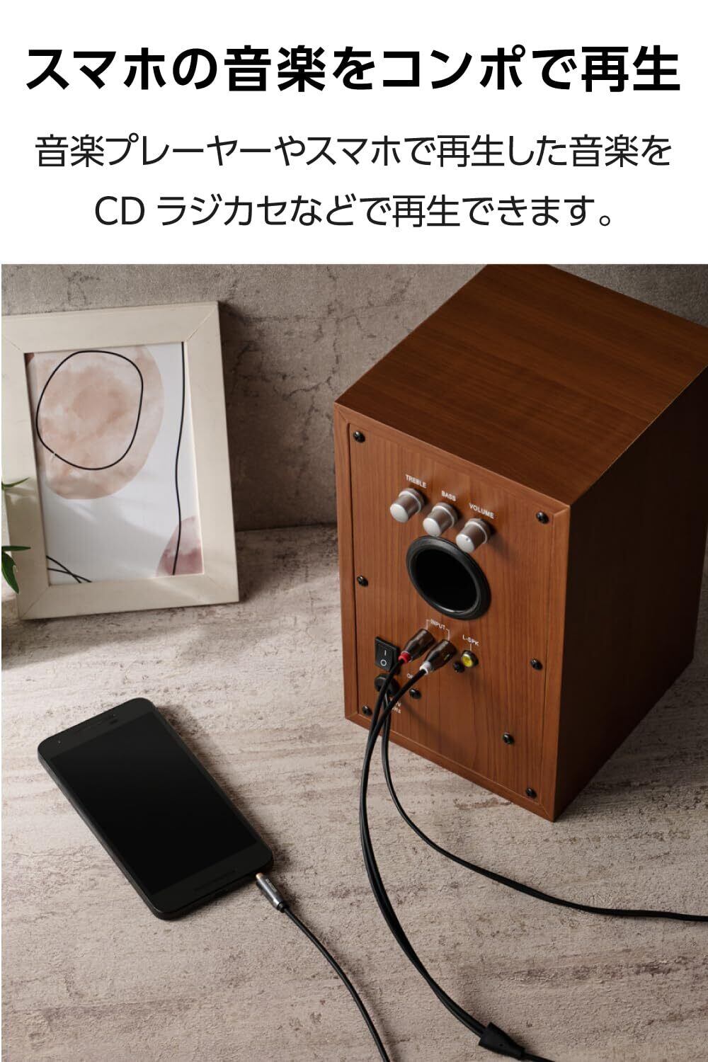 スマートフォンやタブレット、音楽プレーヤーのφ3.5mmステレオミニジャックと、CDラジカセやコンポ、アンプなどのRCAジャックを接続できる、φ3.5mmステレオミニ - RCAケーブルです。