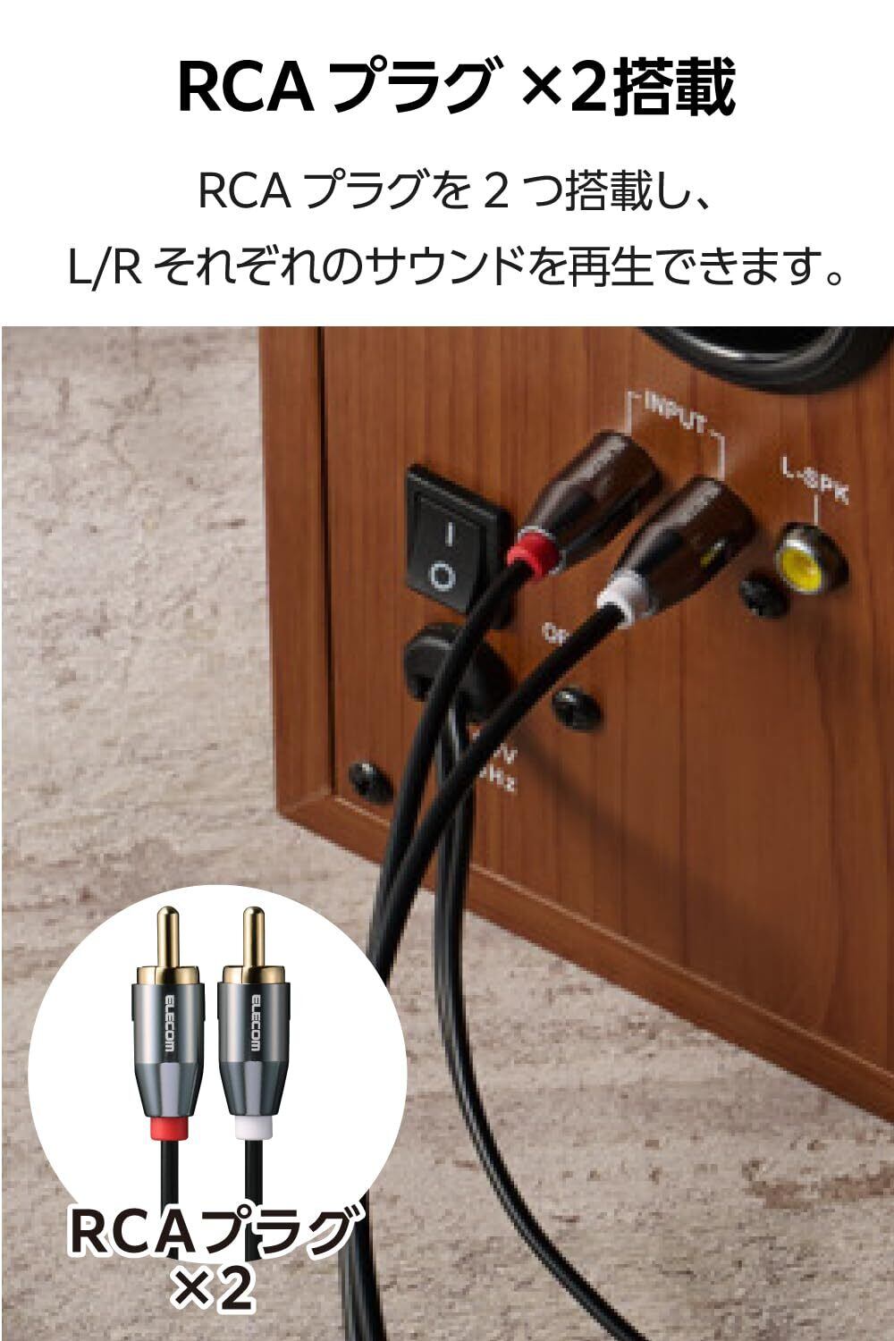 RCAプラグを2つ搭載し、L/Rそれぞれのサウンドを再生できます。