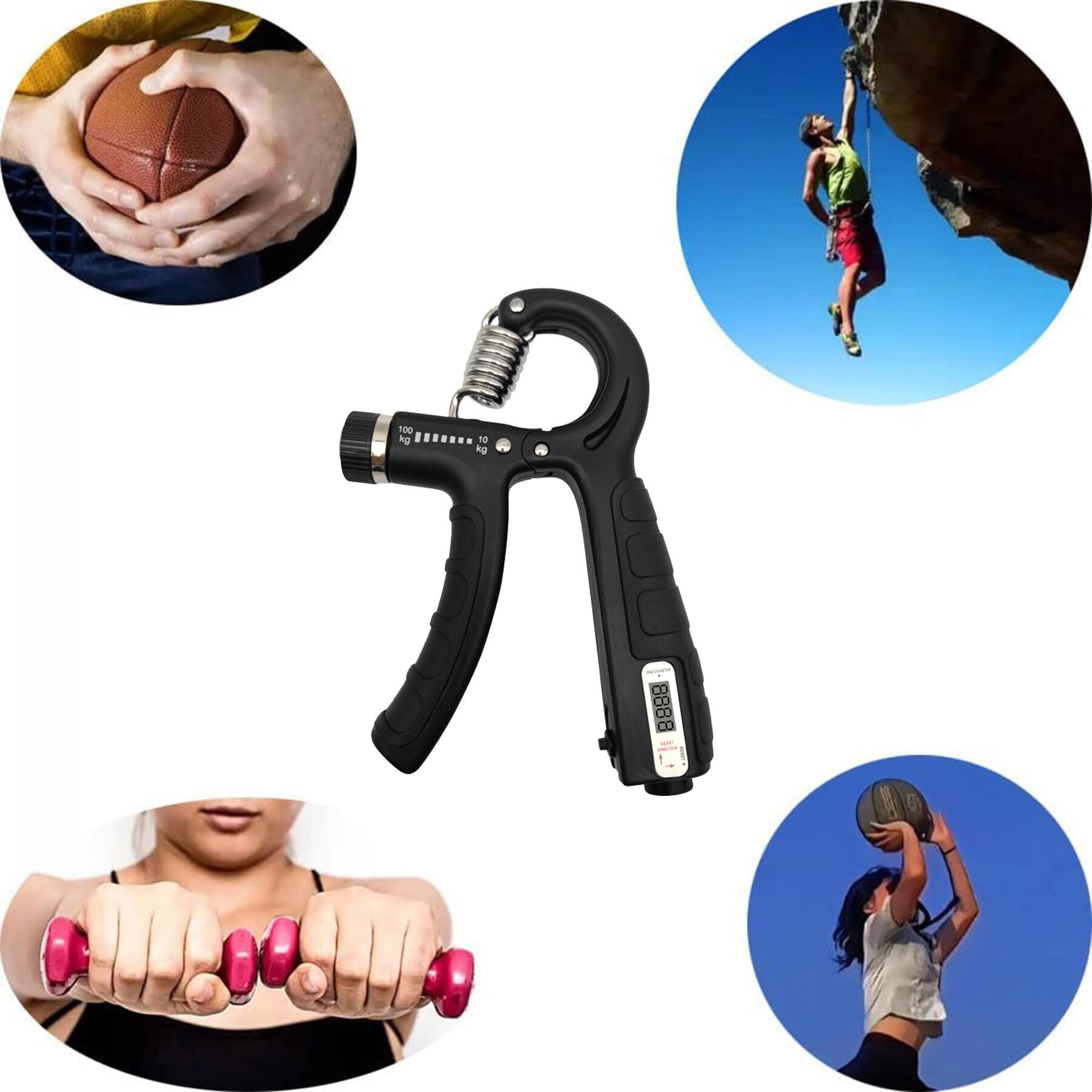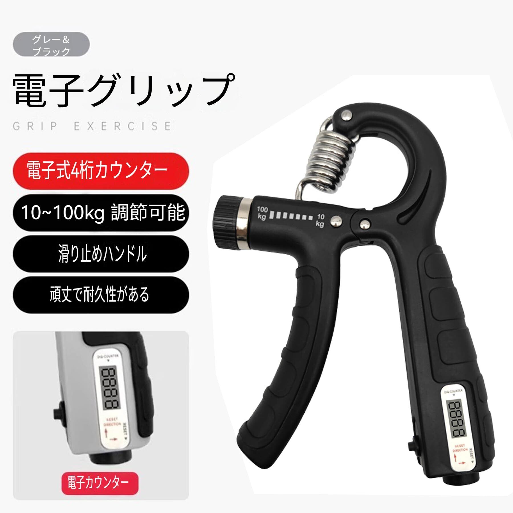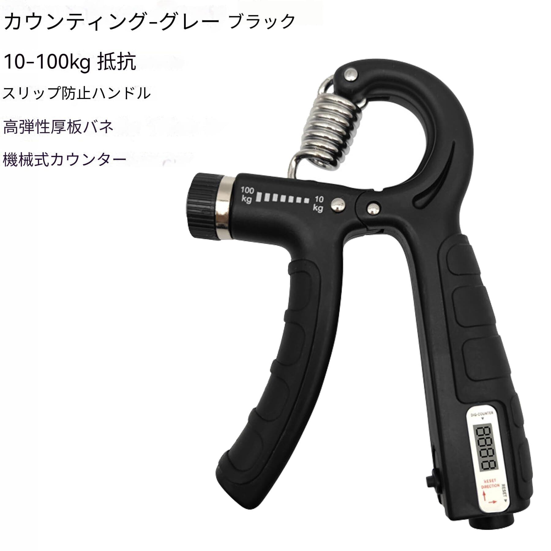 握力グリッパー 10-100kg 負荷調整可能 カウンター付き 握力増強器 ハンドグリップ トレーニング 筋トレ リハビリ ストレス解消 前腕・手・指の強化 滑り止めグリップ 男女兼用 (黒 1個)