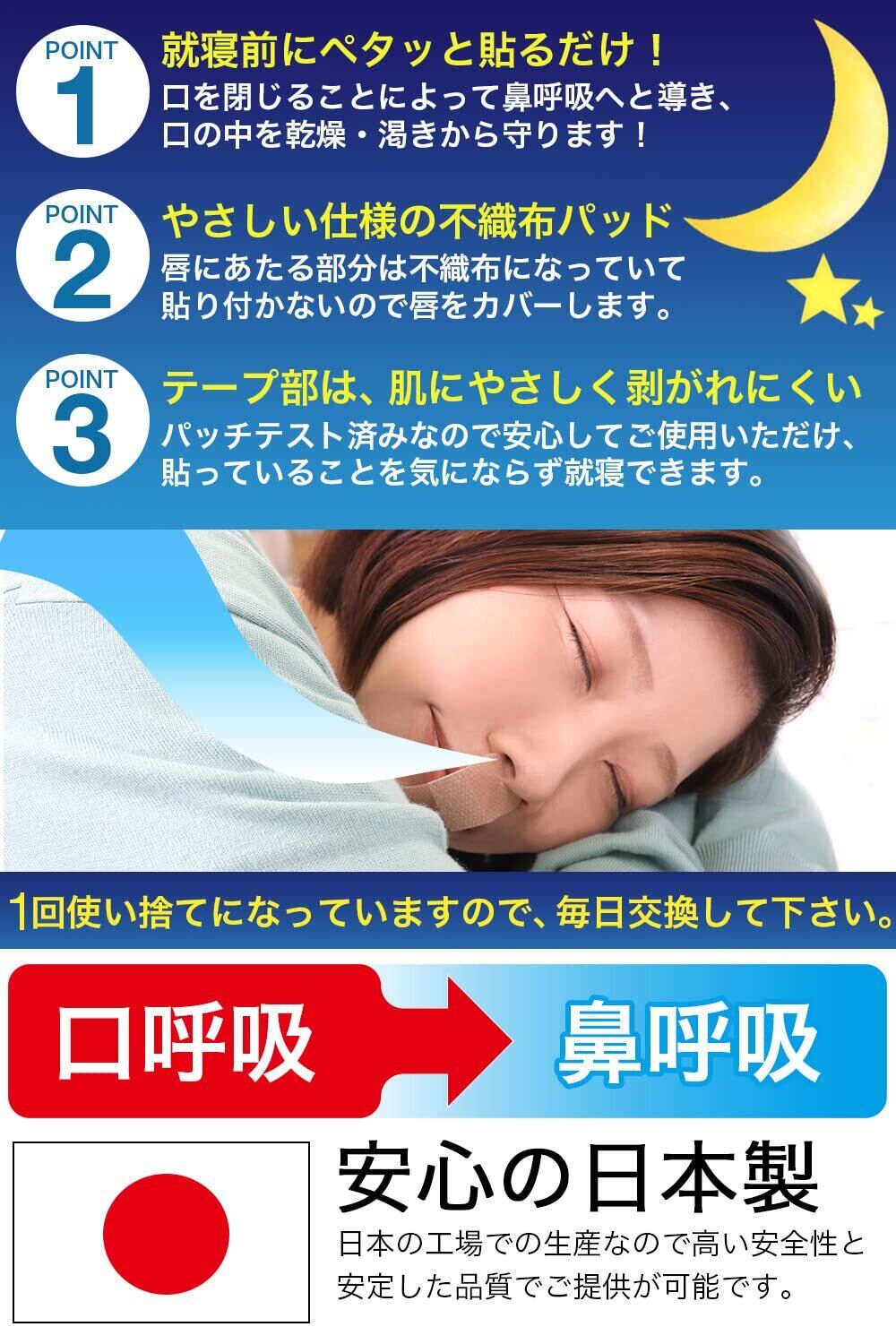 口閉じテープ おやすみ マウステープ 増量タイプ 40枚入×3個セット「計120枚」日本製 いびき軽減グッズ 鼻呼吸テープ