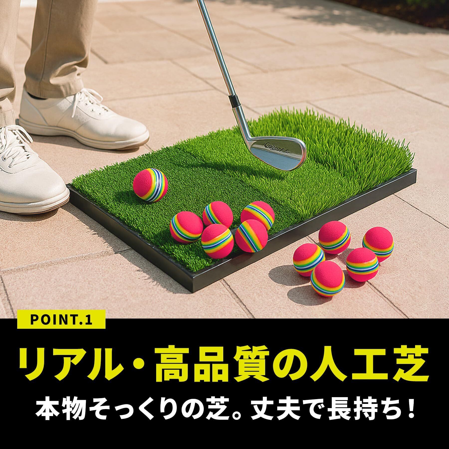 【ラフ・芝・短い芝の3種類構成】芝風マットはラフ・芝・短い芝の3種類構成となっており、それぞれの芝の長さが35mm・15mm・10mmとなります。、様々なシチュエーションを想定してトレーニングしてみてはいかがでしょうか?