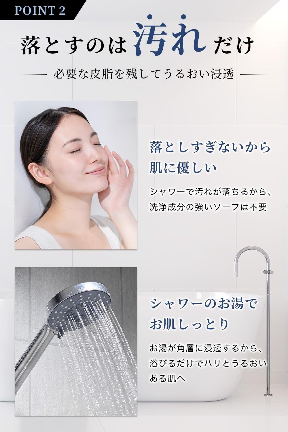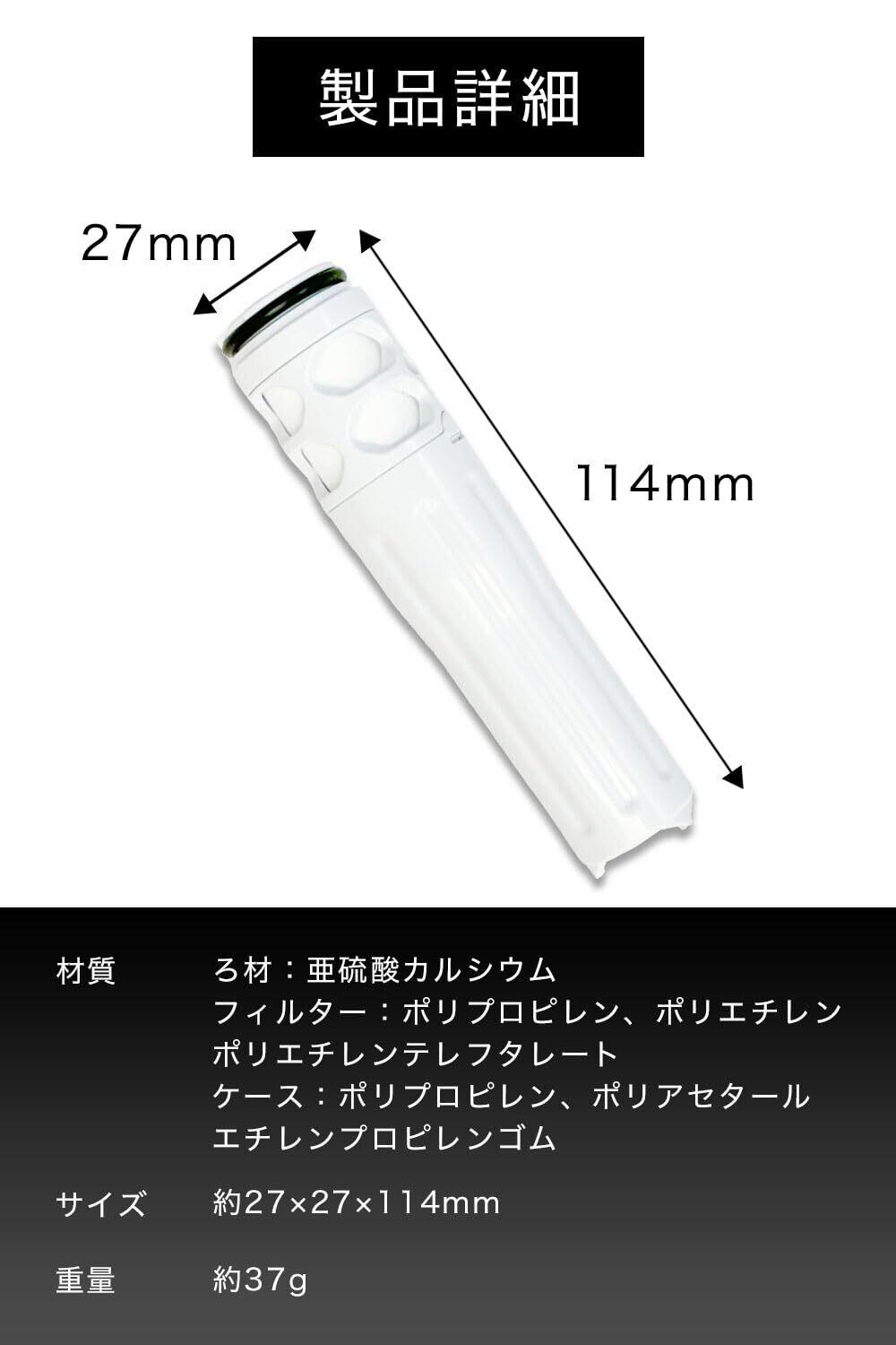 2層構造フィルター(繊維フィルター+亜硫酸カルシウム)で水中の残留塩素や汚れを除去