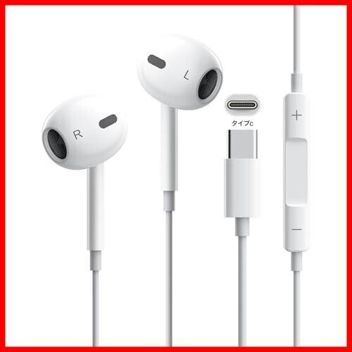 【2025新版 iPhone15対応】イヤホン 有線 タイプC 有線ヘッドセットマイク内蔵 有線HiFi 騒音低減 クリア通話 リモコン付き 快適な装着感 type-c 人間工学 通話対応 音量調整 遅延なし 重低音 小型·軽量 防水 usb c iPhone/Android/Galaxy/iPadなど各機種対応