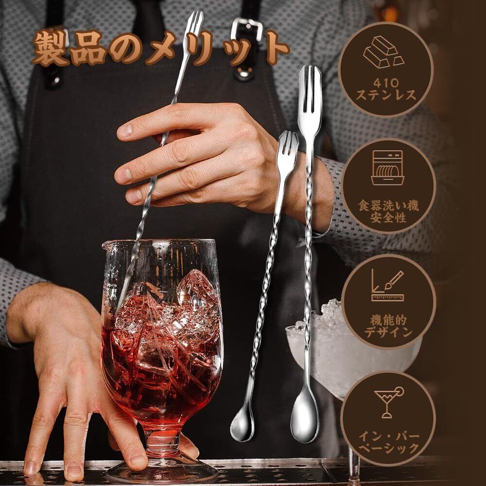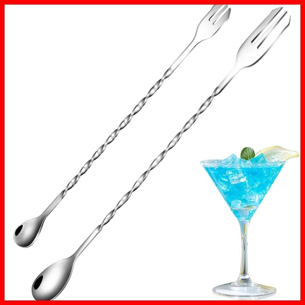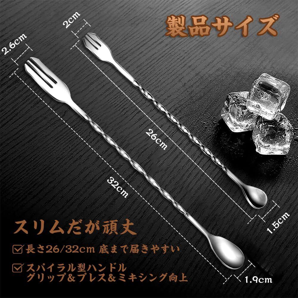 バースプーン ステンレス製 マドラー 26cm+32cmツーピース かき混ぜ棒 おしゃれ バーテンダーセット カクテル 高耐久性 ヨーグルト作り業務用 家庭用(シルバー) [並行輸入品]