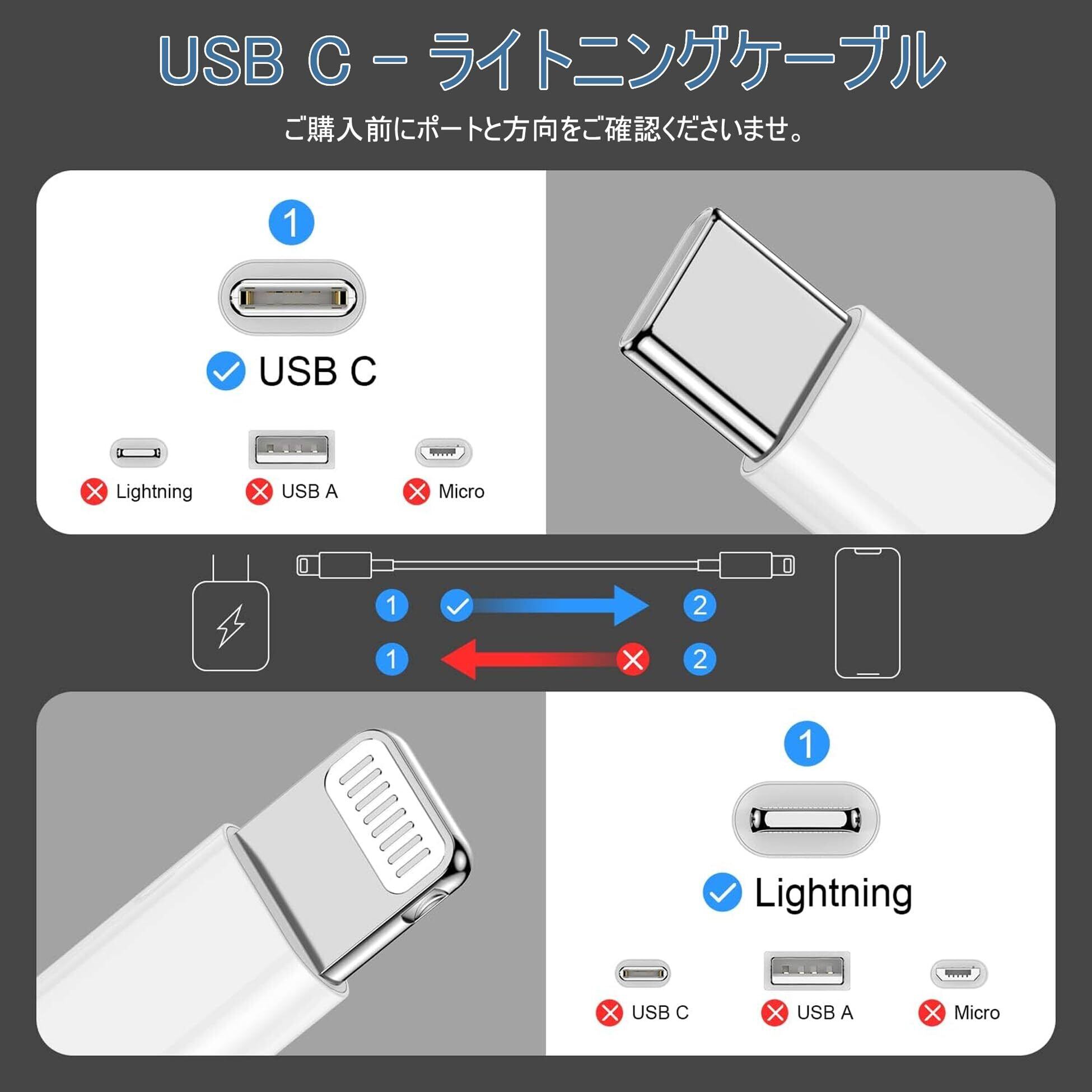 USB-C ライトニングケーブル 純正 1M 3本セット【2025新版 MFi認証】 iphone充電ケーブルタイプC 20W対応 PD急速充電 iPhone コード 超高耐久&高速データ同期 for iPhone14/13/12 Pro Max/11/X/8/iPad/AirPods/MacBookなど各種対応