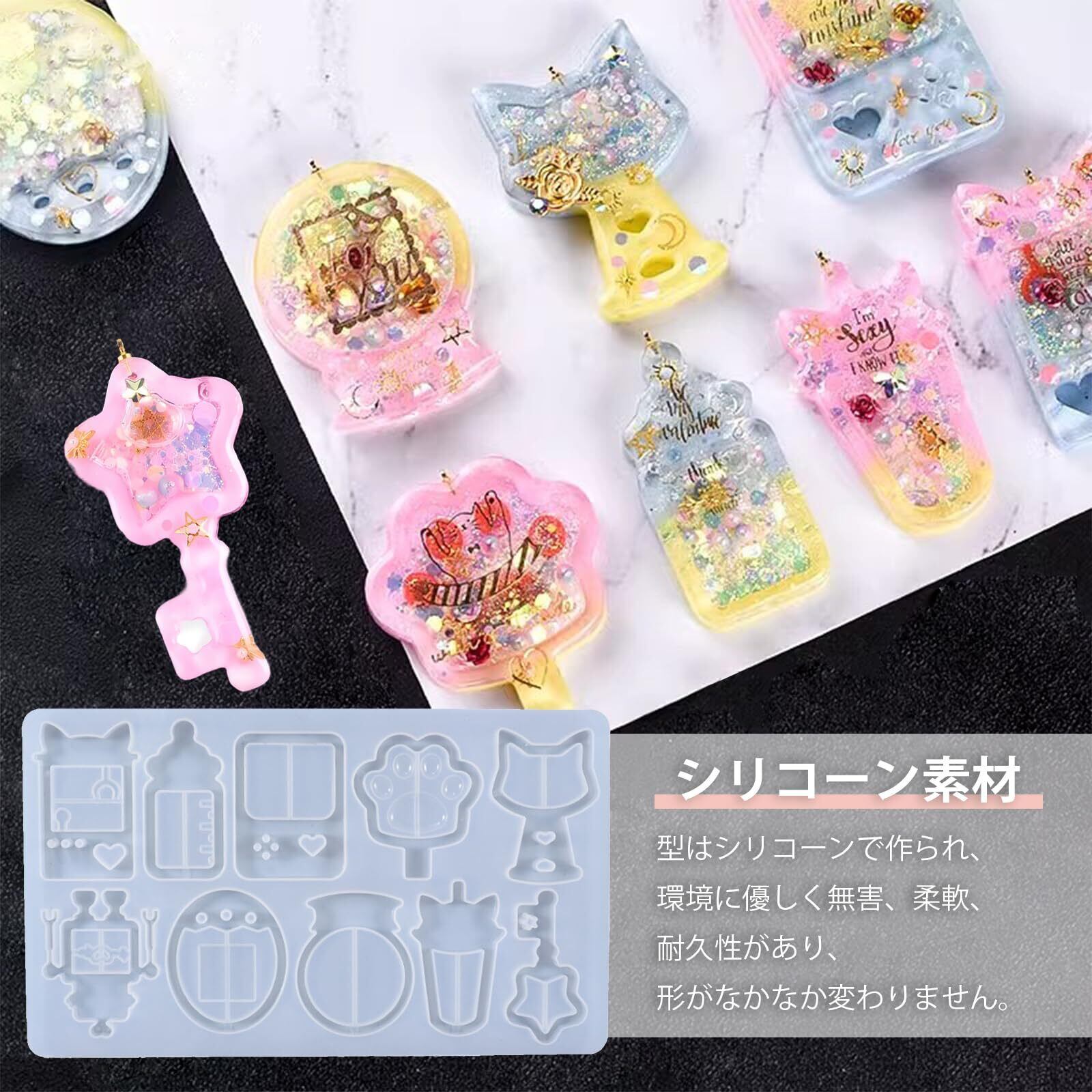 【簡単DIY】面白いパーツを入れて、自由にDIYを楽しんでください。エポキシ樹脂、UV樹脂、シール、ラメ、ビーズ、輝くもの、紙のカスなどを入れることができます。