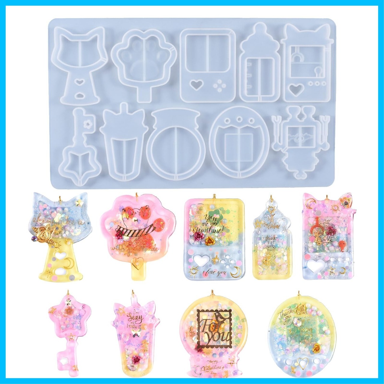 YFFSFDC シリコンモールド 流砂型 10種類 レジン型 小動物 猫耳 ゲーム機 哺乳瓶 ロボット 中身がシャカシャカ動く ペンダント アクセサリー 装飾 DIY手作り モールド (B)
