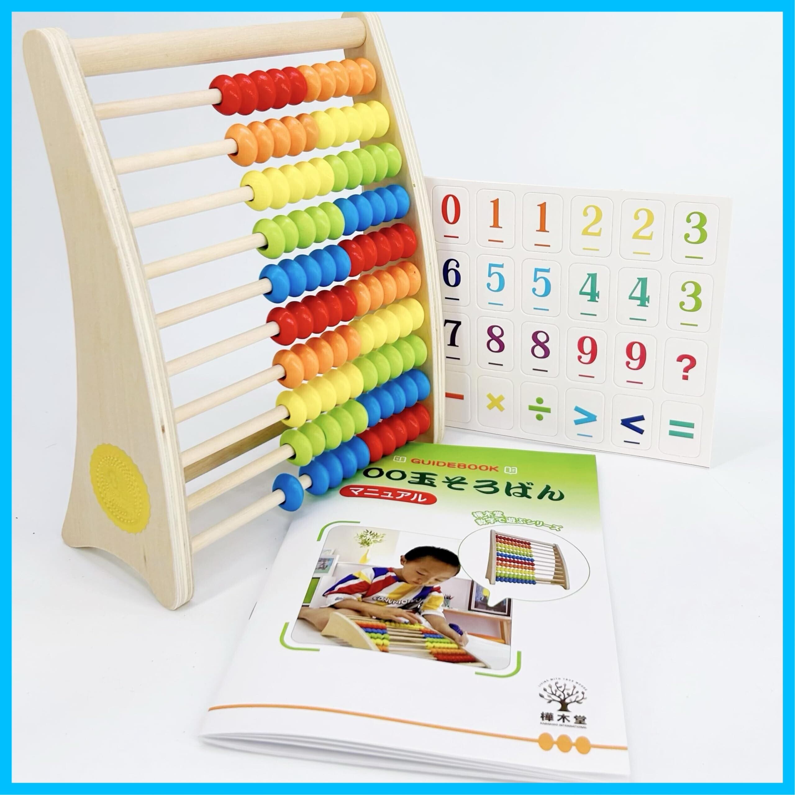 完全木製 100玉そろばん 算数・知育ツール 分かりやすいマニュアル付き 親子で遊んで学ぶ 算数のスタート 数字カード付き 百玉そろばん