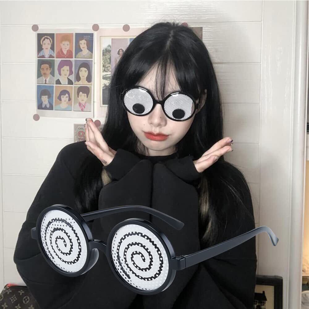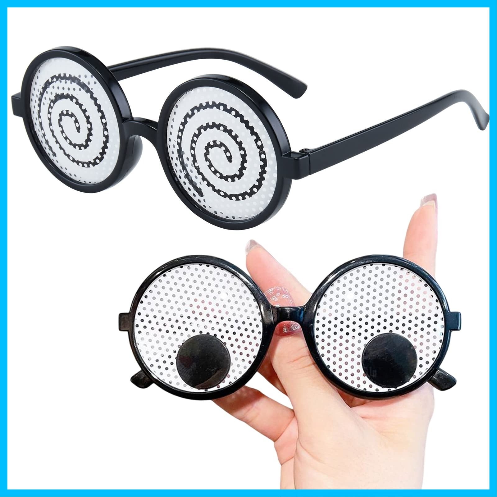 【2個セット 面白いメガネ】2種類の陽気なサングラス:目玉眼鏡1個と眩暈眼鏡1個。半透明のメガネは良い光景を保ちます特徴的で面白いデザイン。