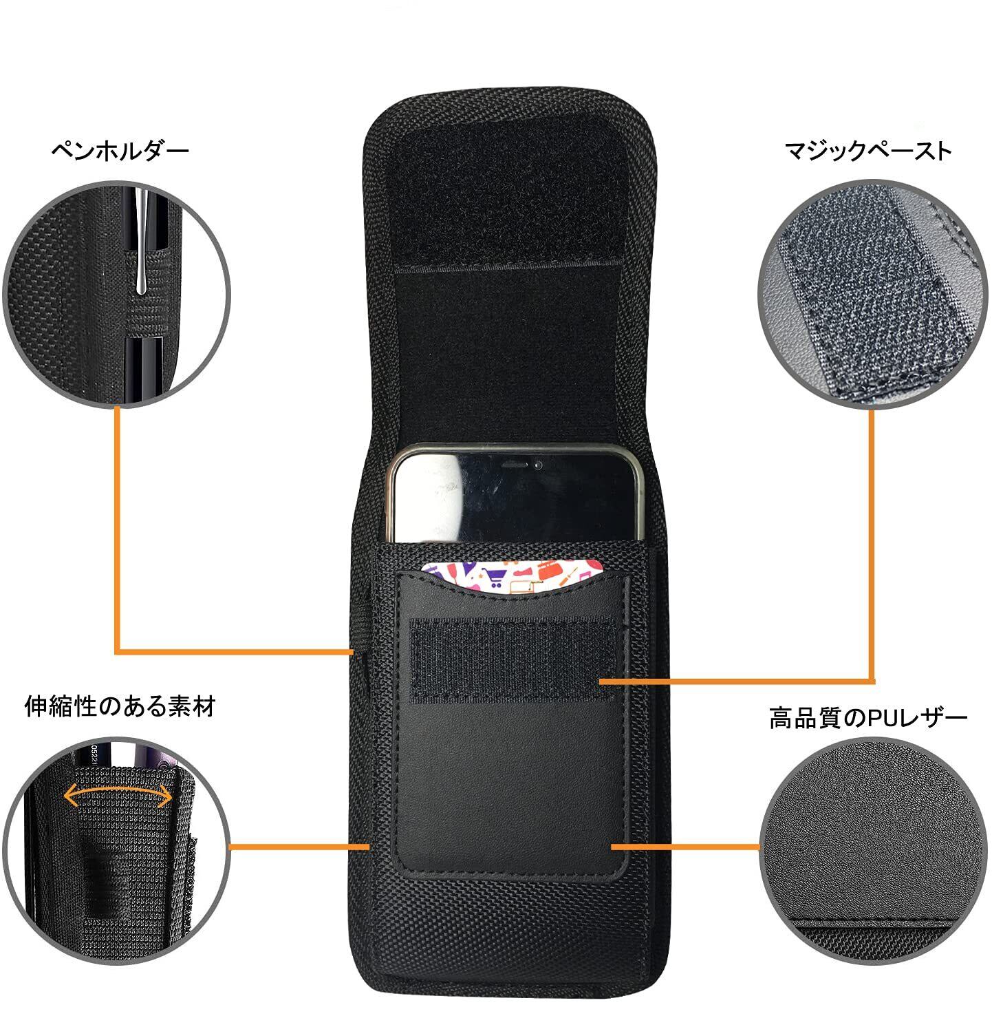 スマホポーチ素材: ナイロン+PUレザー。軽量、良い手触り、汚れが付きにくく、耐久性に優れています。側面は弾力性があって、携帯は出入りが便利です。裏地は手触りの良いベルベット調になっています電話に保護する。