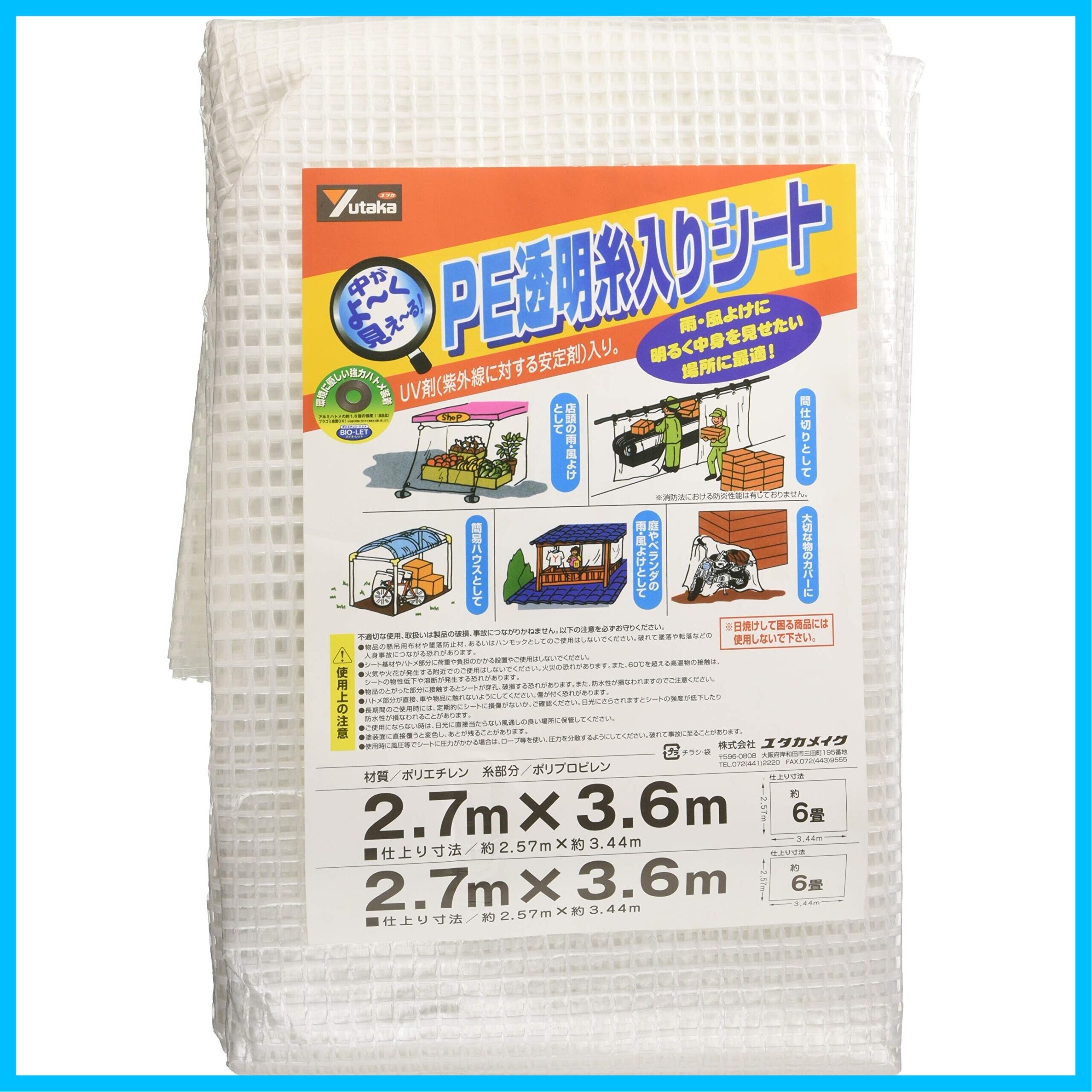 ユタカメイク PE透明糸入りシート 2.7m×3.6m B-312 間仕切り 雨除け 風除け 埃除け