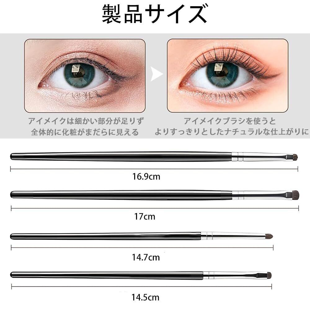 1.セットには4本のアイメイクブラシが含まれており、まぶたの下、目尻、目頭のところのメイクを細かく描くことができ、美しいアイメイクを描くのを補助するユーティリティです。