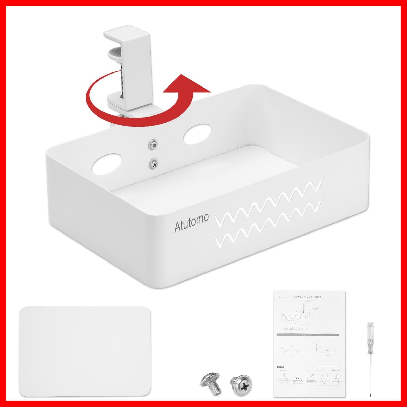 Atutomo デスク下の収納ラック デスク下引き出し 360度回転式 テーブル下収納ラック 後付け引き出し 小物整理 穴あけ不要 取り付け簡単 板0.5〜5cm設置可能 耐荷重5kg スチール製 クッションパッド付き (ホワイト)