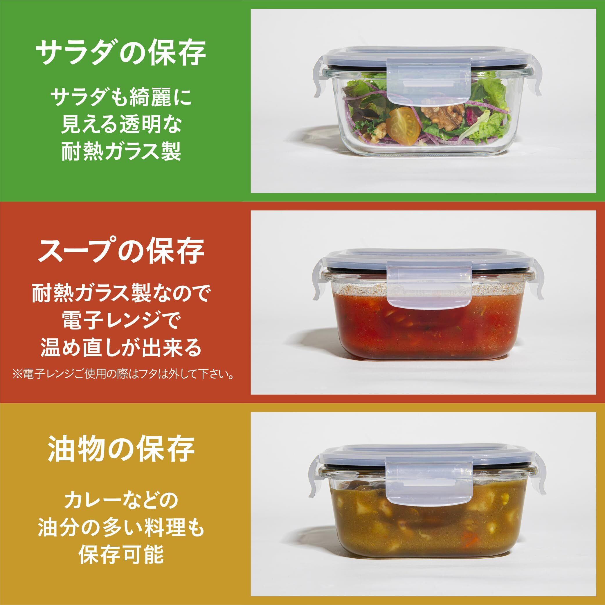 余ったスープを保存して電子レンジで温め直して使えます。※蓋を外してから電子レンジをご使用下さい。作り置きした食材を積み重ねて、冷蔵庫内もスッキリ収納することが出来ます。