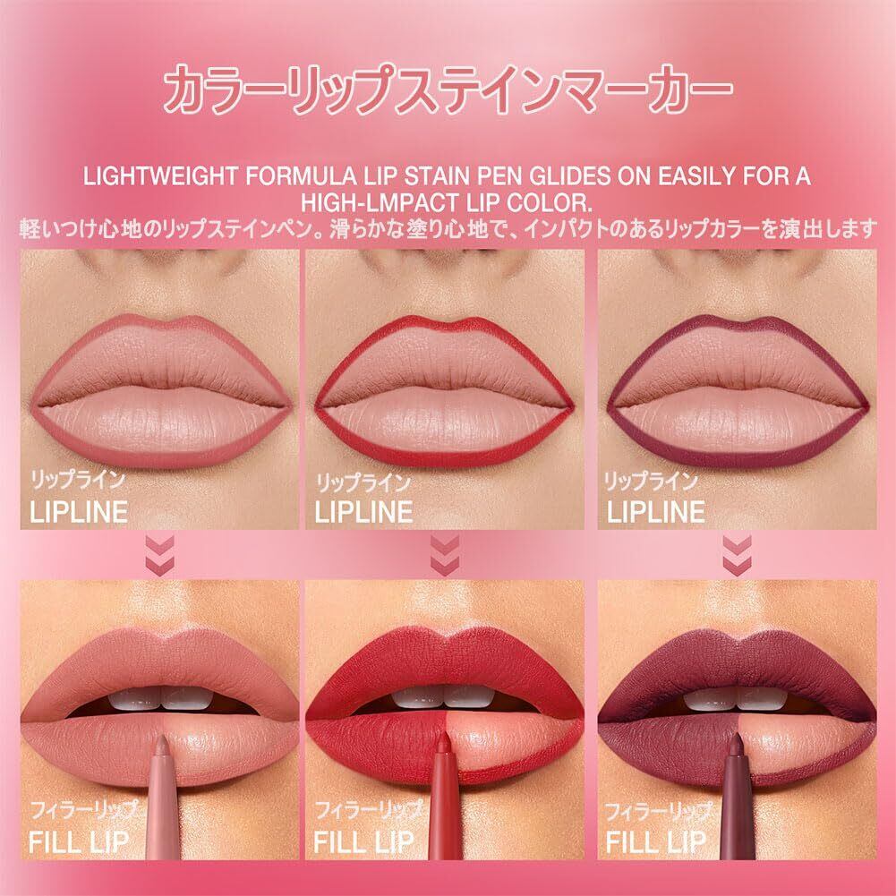 [長持ちする着用感]長時間落ちないように設計されたこのリップ ライナー セットは、防水性と防じん性を備えており、一日中着用するのに最適です。頻繁なタッチアップは不要。