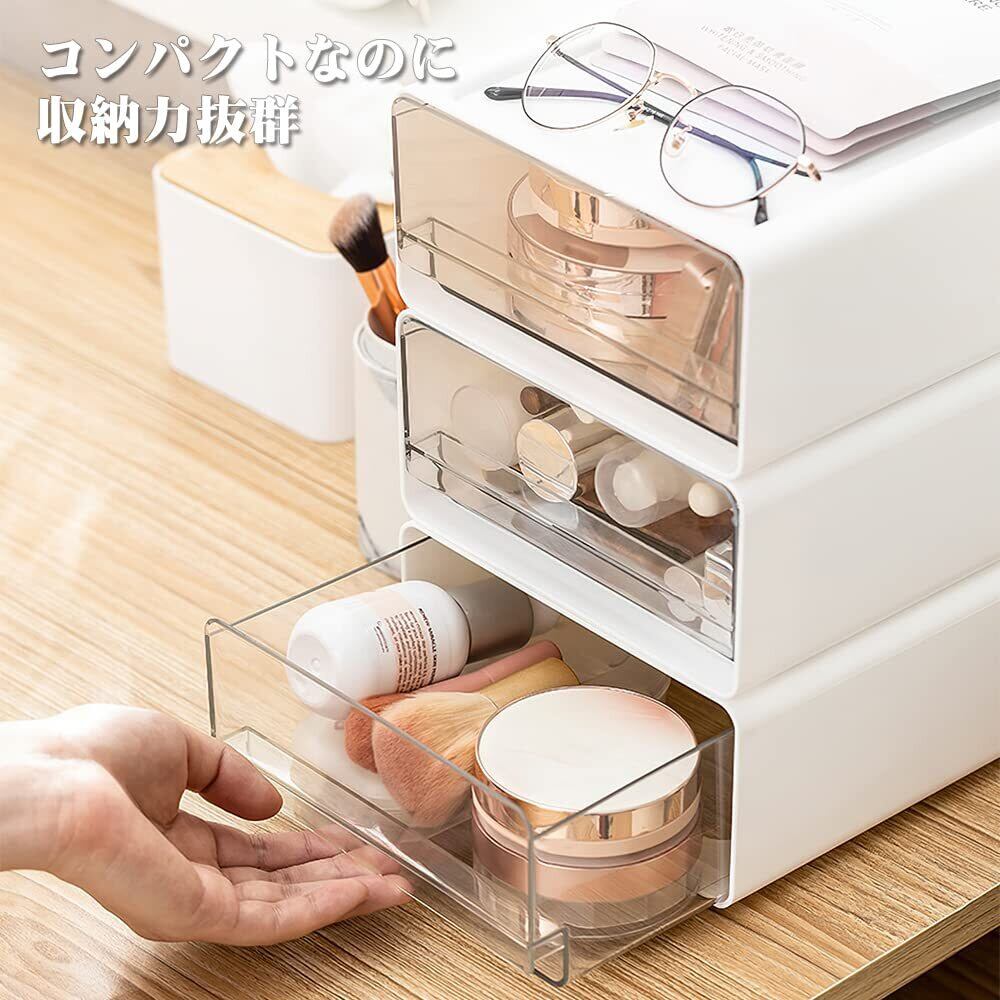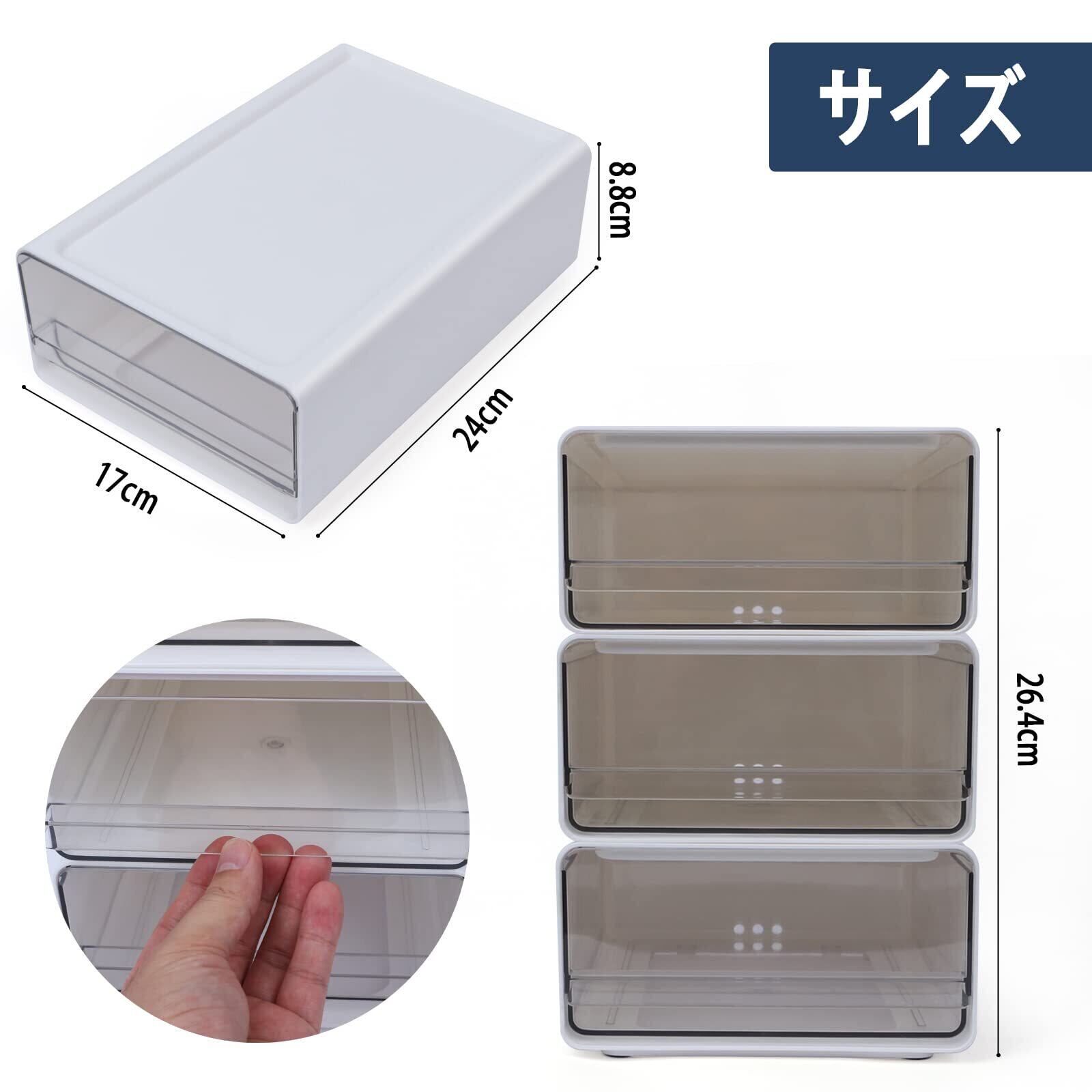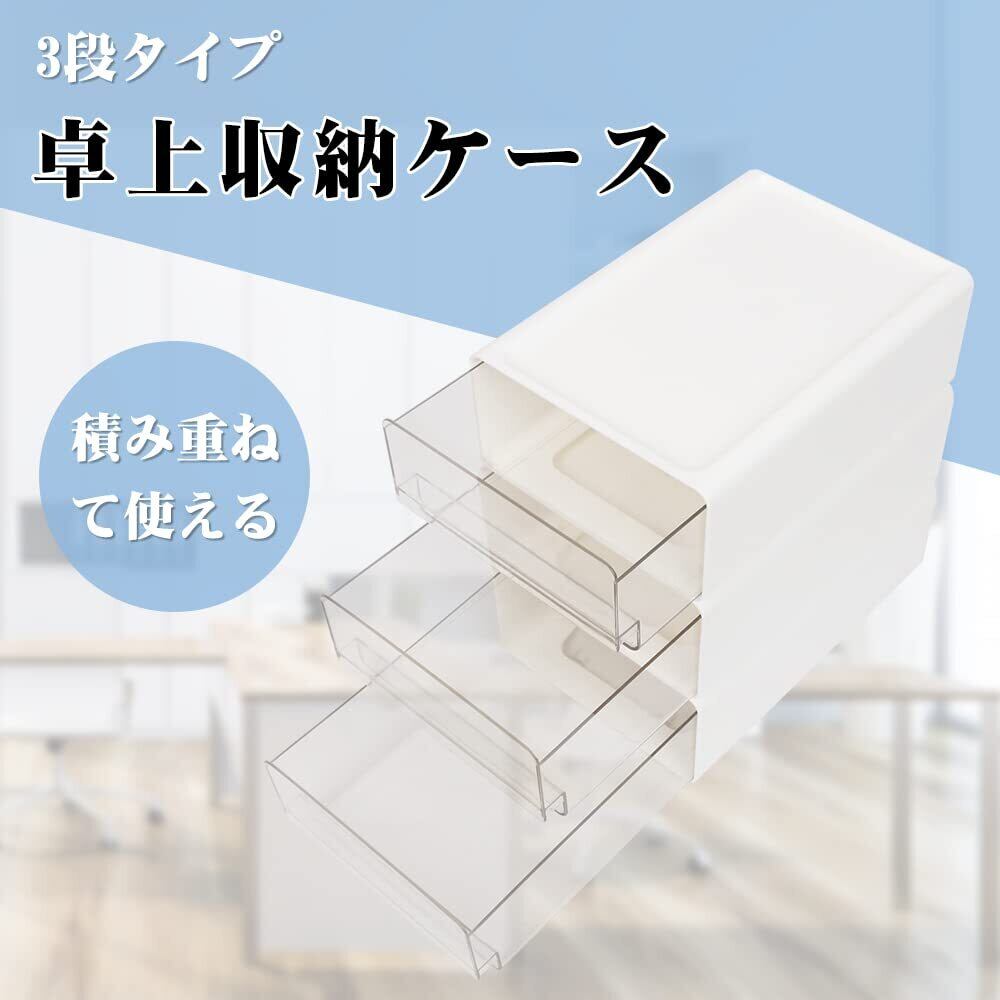 『商品仕様』サイズ:17㎝x24㎝x8.8㎝/3個セット/材質:ABSプラスチック/透明プラスチックの引出しは,内容物が良く見えます.散らかりがちなデスクの周りをスッキリ整理整頓.