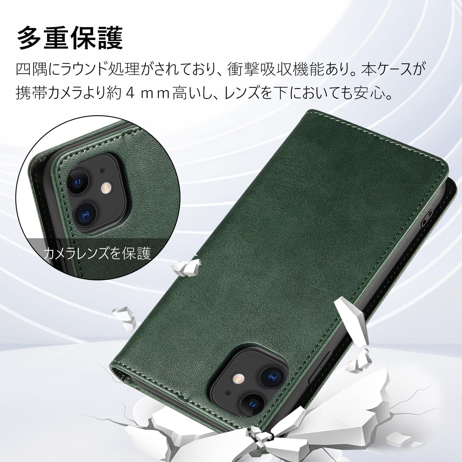 QUEASON【iPhone 11 用 ケース 手帳型】マグネット式 iphone11 用 ケース スタンド機能 いpほね11 用 スマホケース カード収納 アイフォン11 用 スマホケース 耐衝撃 落下防止 防塵(グリーン)